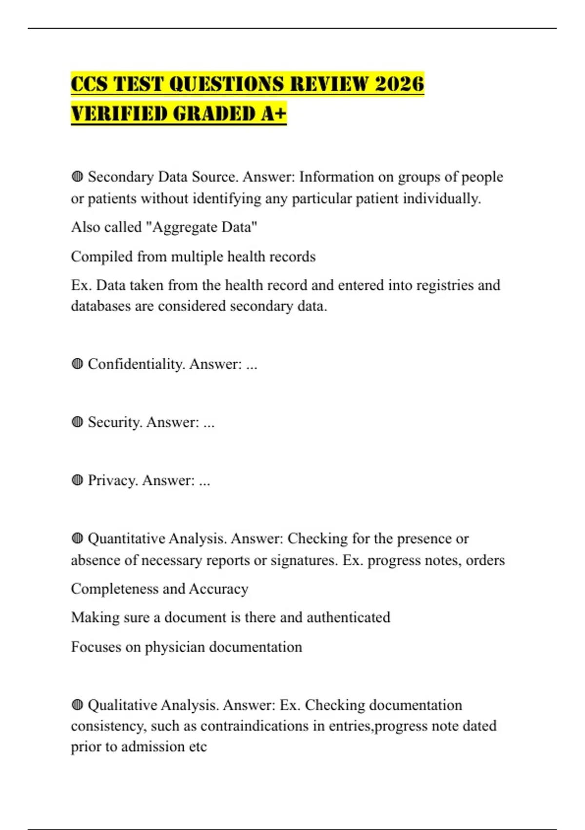 CCS TEST QUESTIONS REVIEW 2026 VERIFIED GRADED A+