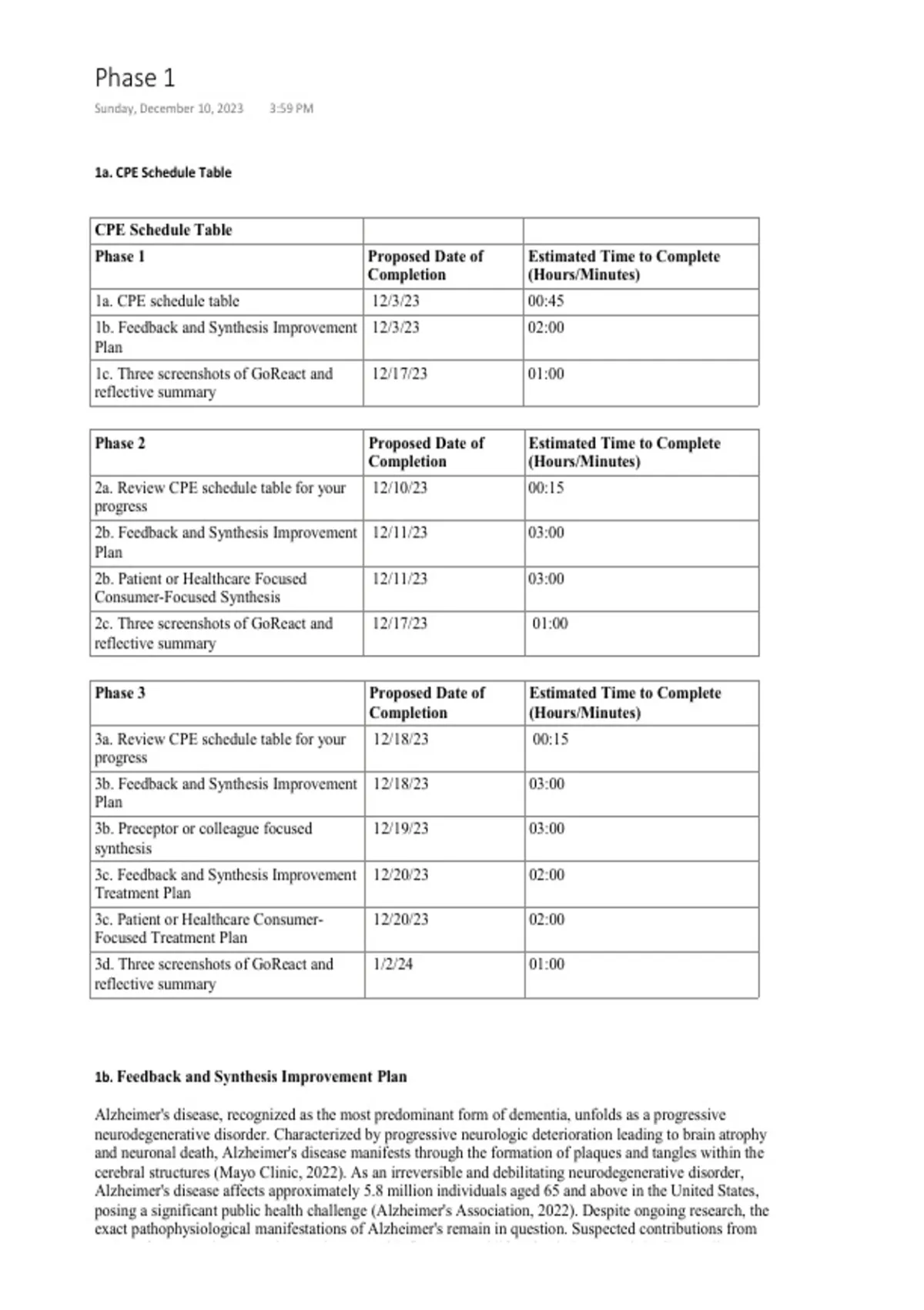 2a. Review CPE schedule table for your 12/10/23 00:15