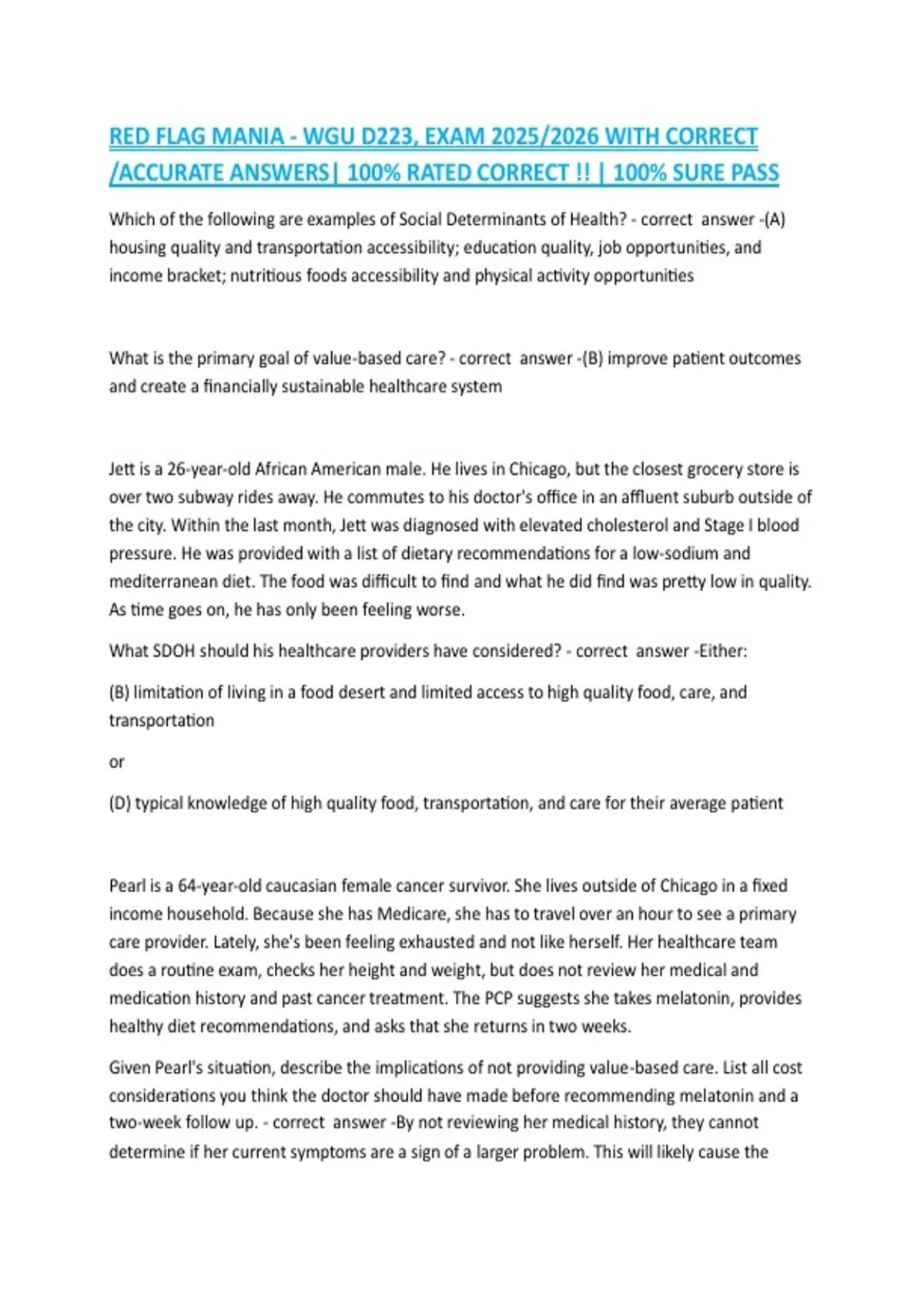 RED FLAG MANIA - WGU D223, EXAM 2025/2026 WITH CORRECT