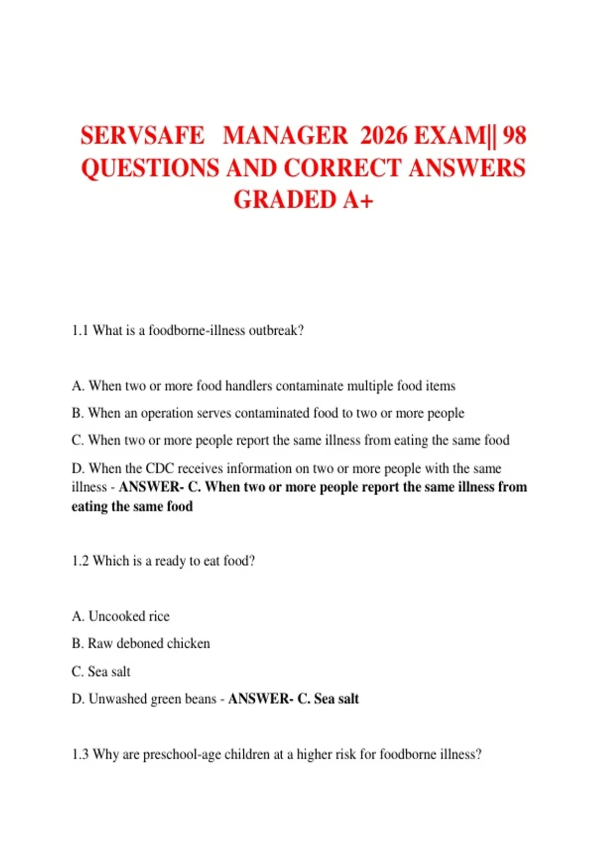 D. Unwashed green beans - ANSWER- C. Sea salt