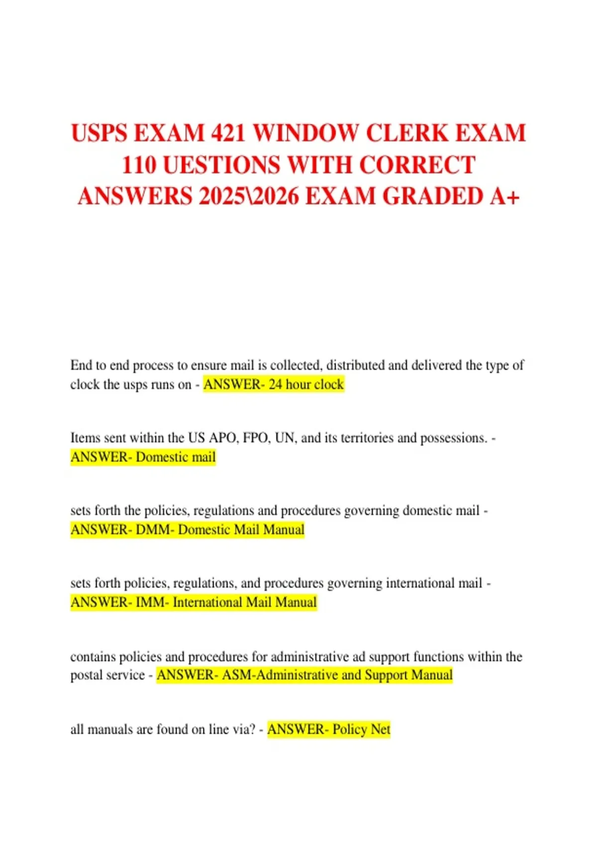 USPS EXAM 421 WINDOW CLERK EXAM 110 UESTIONS WITH CORRECT ANSWERS EXAM GRADED A+USPS EXAM 421 WINDOW CLERK EXAM 110 UESTIONS WITH CORRECT ANSWERS EXAM GRADED A+USPS EXAM 421 WINDOW CLERK EXAM 110 UESTIONS WITH CORRECT ANSWERS EXAM GRADED A+USPS EXAM 421 WINDOW CLERK EXAM 110 UESTIONS WITH CORRECT ANSWERS EXAM GRADED A+USPS EXAM 421 WINDOW CLERK EXAM 110 UESTIONS WITH CORRECT ANSWERS EXAM GRADED A+USPS EXAM 421 WINDOW CLERK EXAM 110 UESTIONS WITH CORRECT ANSWERS EXAM GRADED A+USPS EXAM 421 WINDOW CLERK EXAM 110 UESTIONS WITH CORRECT ANSWERS EXAM GRADED A+