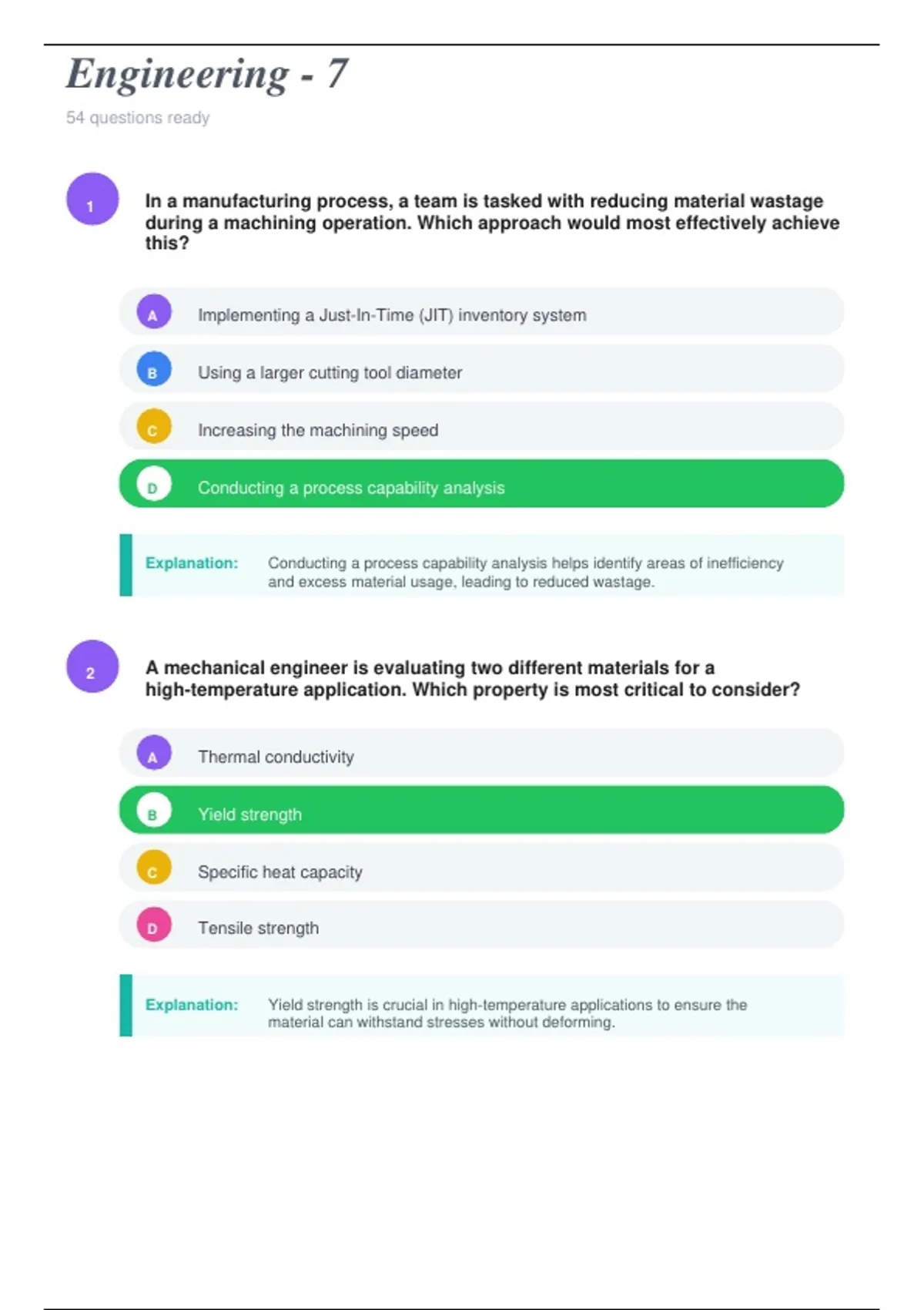 Explanation: Yield strength is crucial in high-temperature applications to ensure the