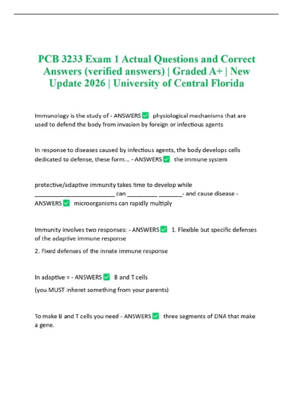 PCB 3233 Exam 1 Actual Questions and Correct Answers (verified answers) | Graded A+ | New Update 2026 | University of Central Florida