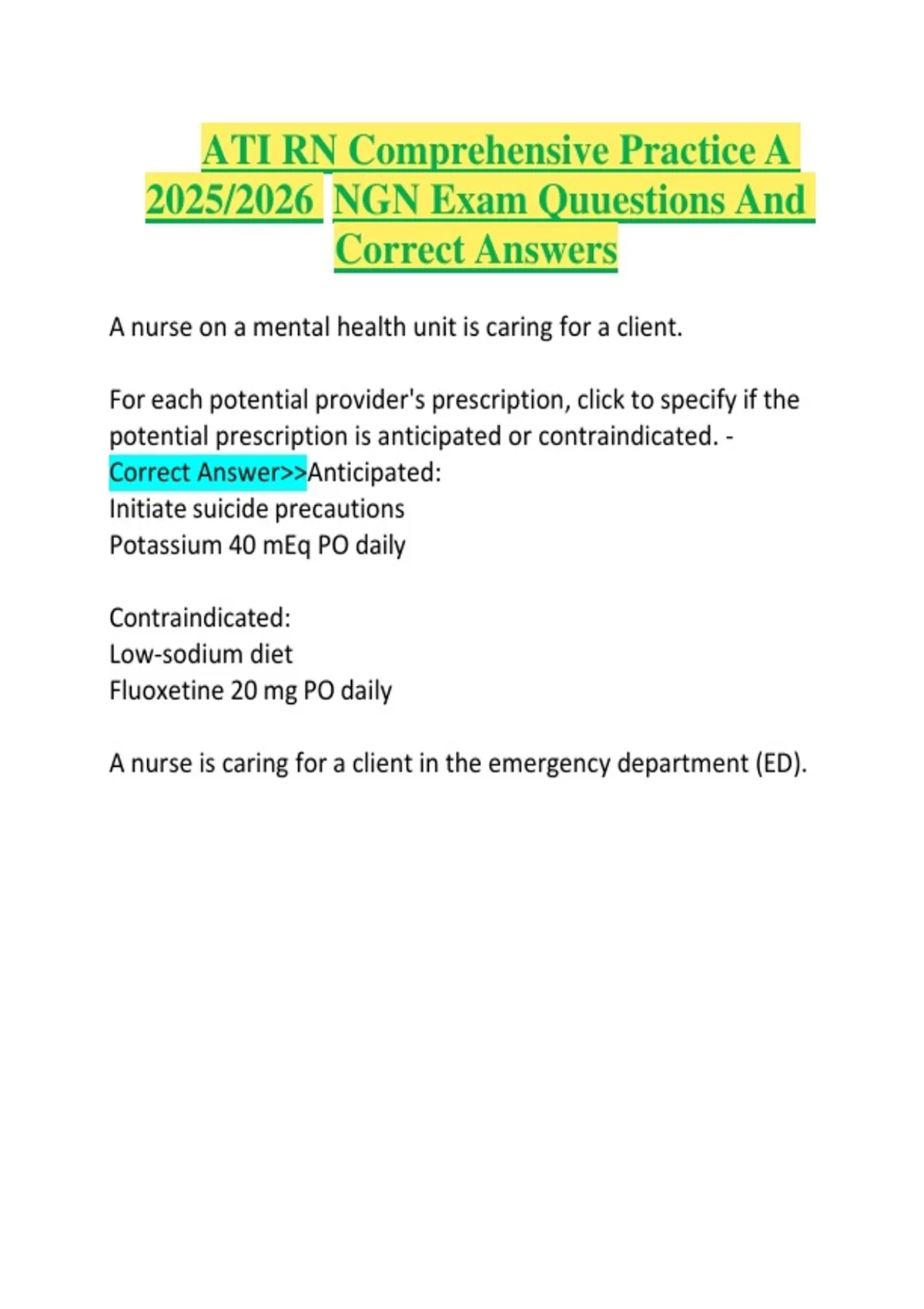 ATI RN Comprehensive Practice A 2025/2026 NGN Exam Quuestions And Correct Answers