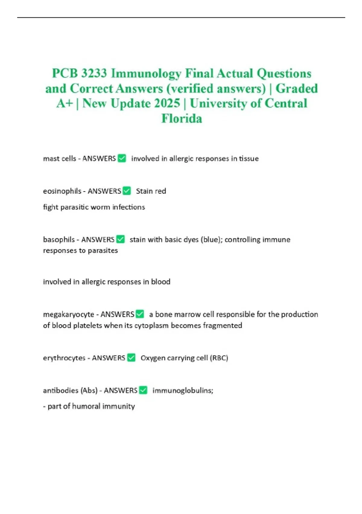 PCB 3233 Immunology Final Actual Questions and Correct Answers (verified answers) | Graded A+ | New Update 2025 | University of Central Florida