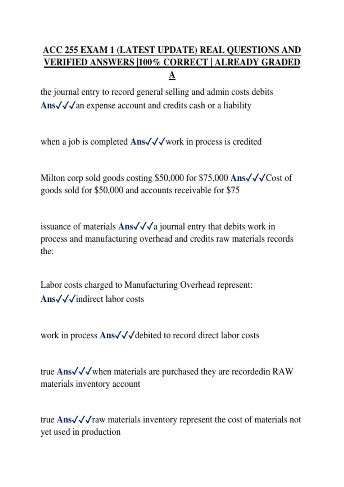 ACC 255 EXAM 1 (LATEST UPDATE) REAL QUESTIONS AND VERIFIED ANSWERS |100% CORRECT | ALREADY GRADED A