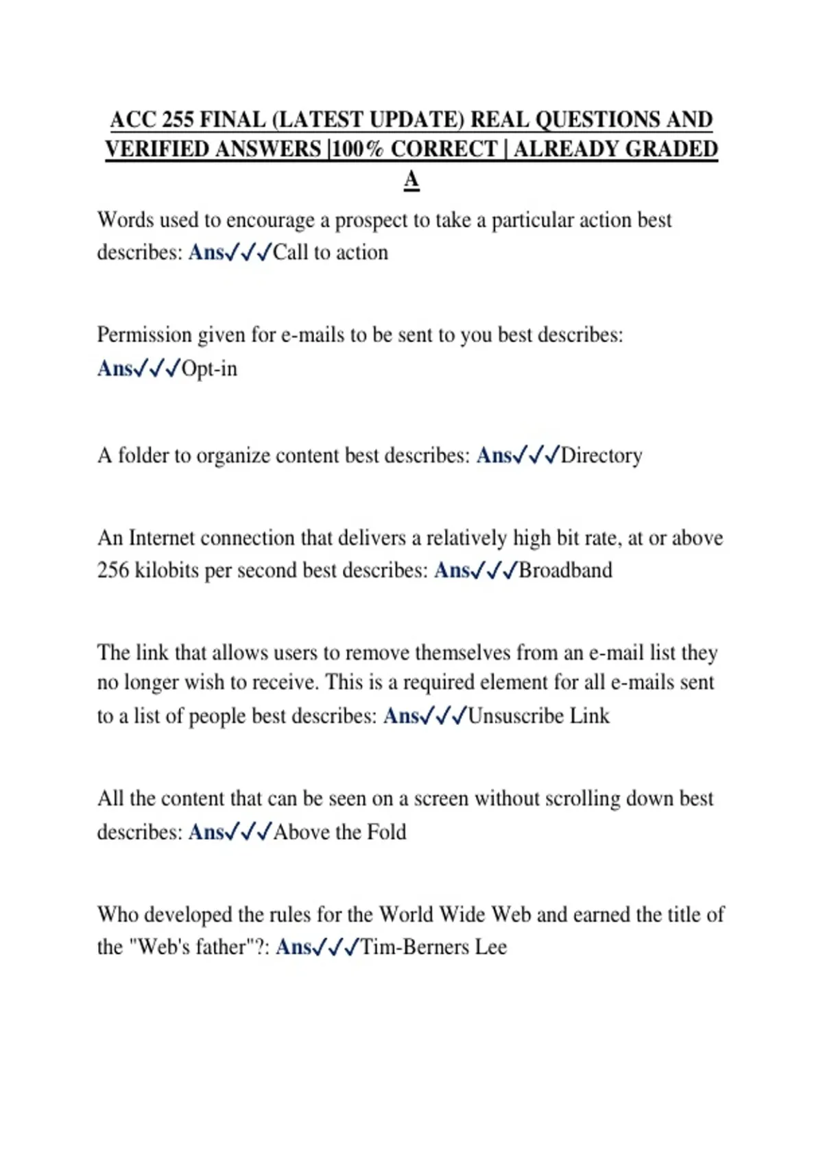 VERIFIED ANSWERS |100% CORRECT | ALREADY GRADED