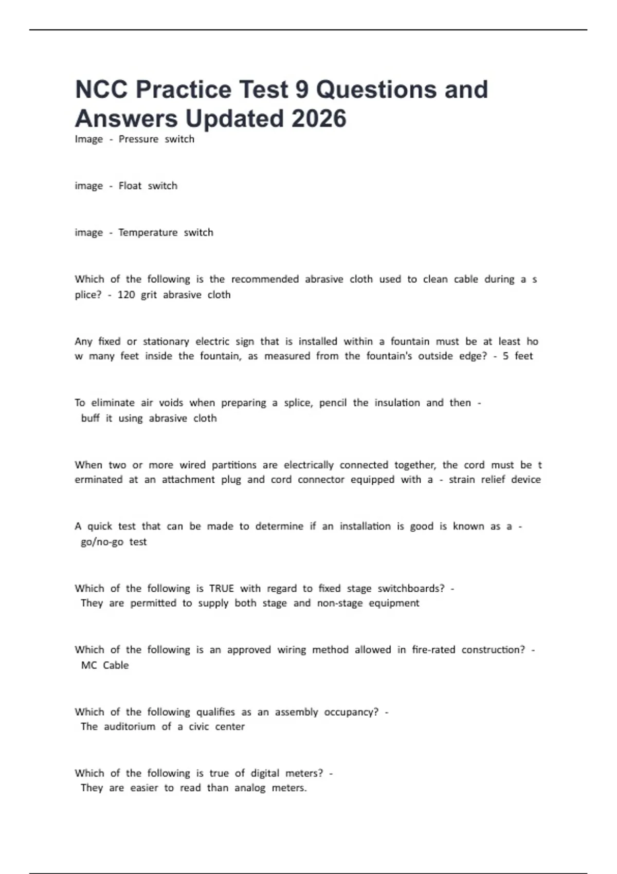 NCC Practice Test 9 Questions and