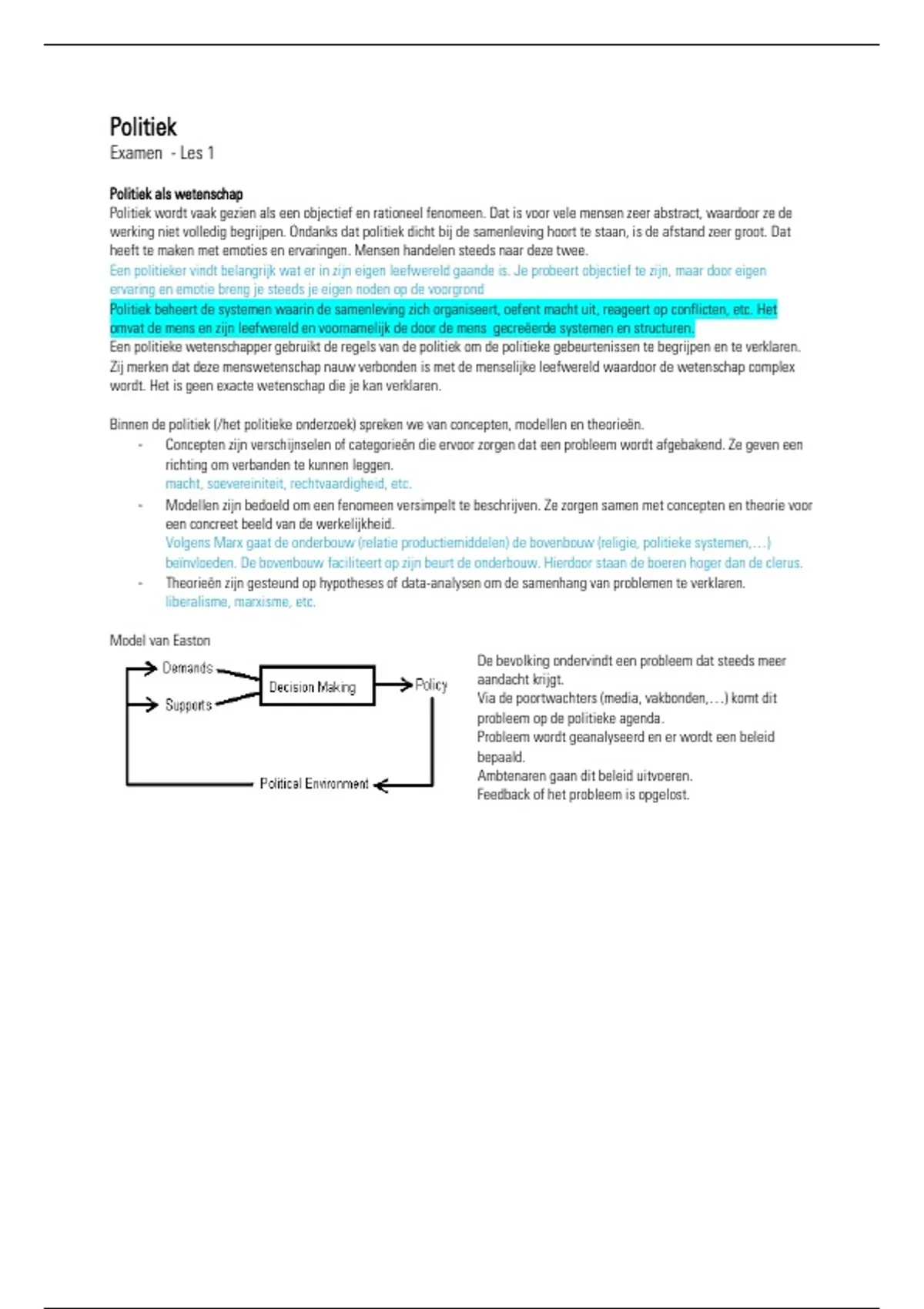 Samenvatting voor het examen politiek/binnenland in het eerste jaar (eerste semester) aan Thomas More. Met examenvragen.