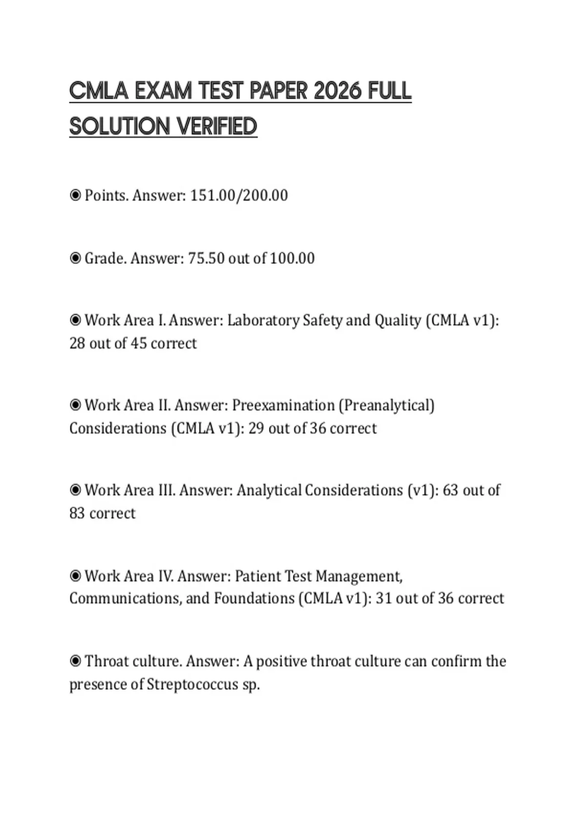 ◉ Work Area I. Answer: Laboratory Safety and Quality (CMLA v1):