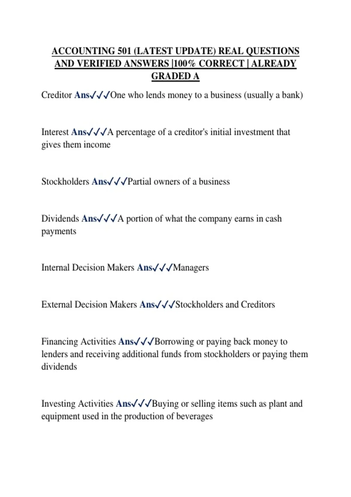 ACCOUNTING 501 (LATEST UPDATE) REAL QUESTIONS AND VERIFIED ANSWERS |100% CORRECT | ALREADY GRADED A