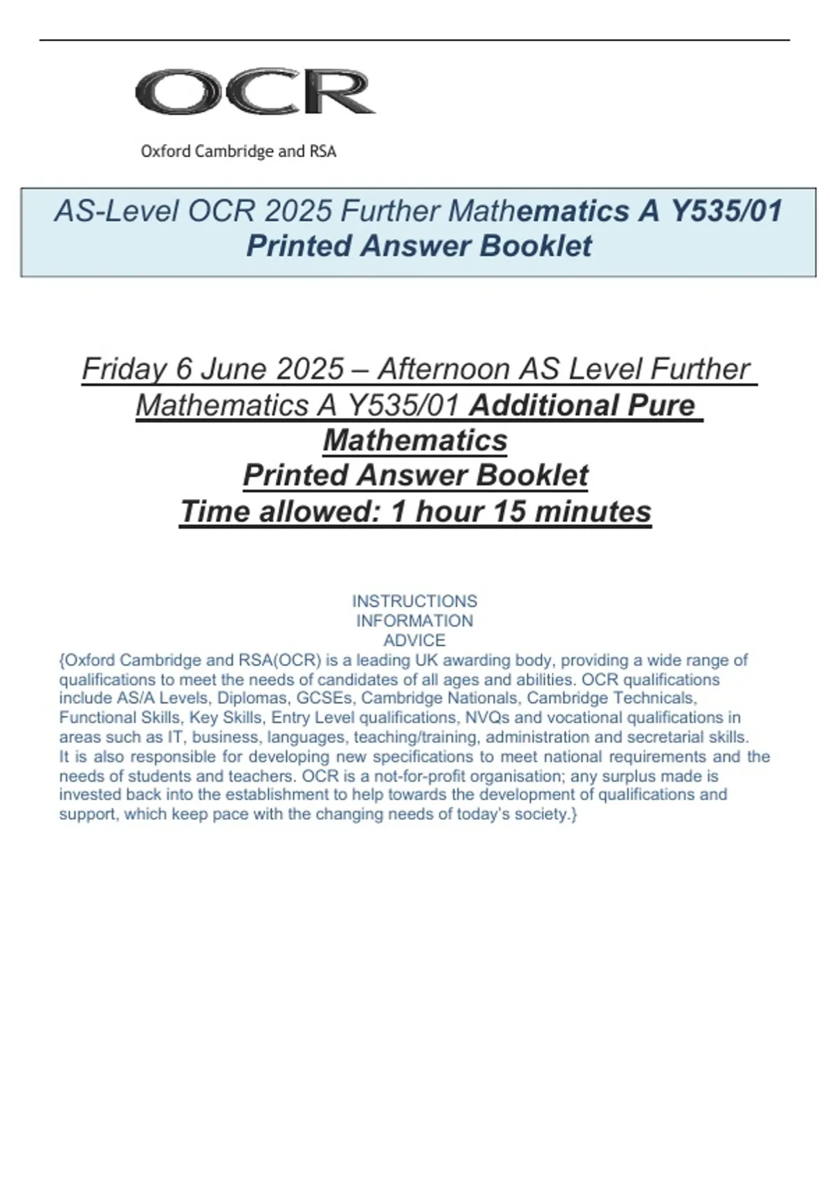 AS-Level OCR 2025 Further Mathematics A Y535/01