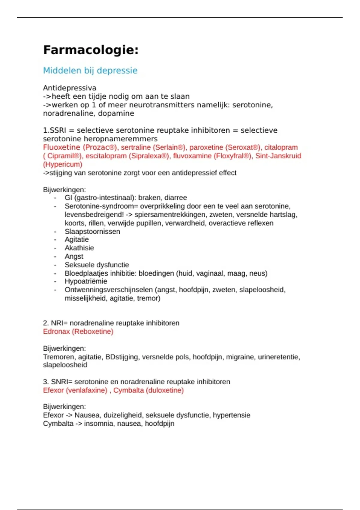 3. SNRI= serotonine en noradrenaline reuptake inhibitoren