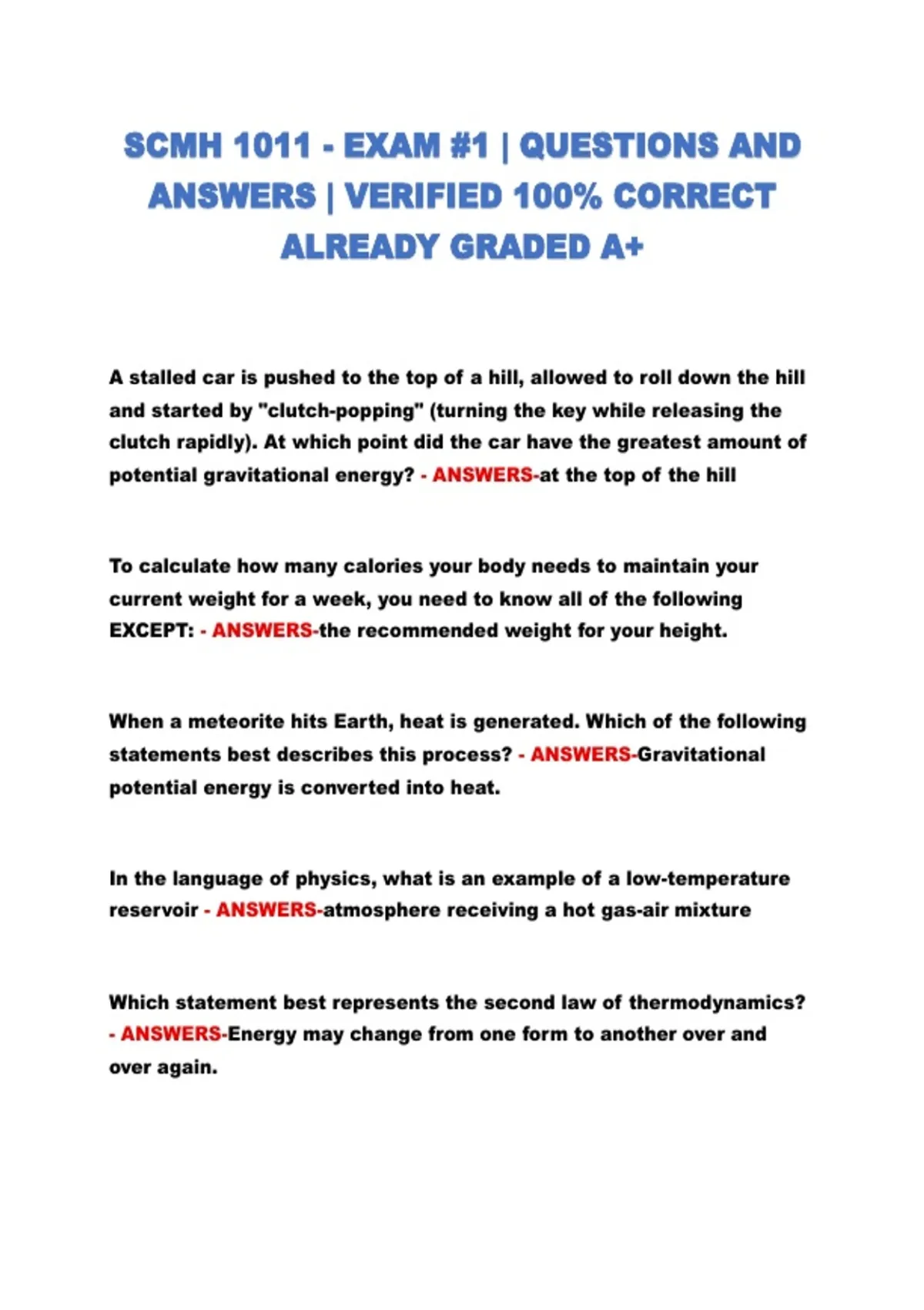 SCMH 1011 - EXAM #1 | QUESTIONS AND