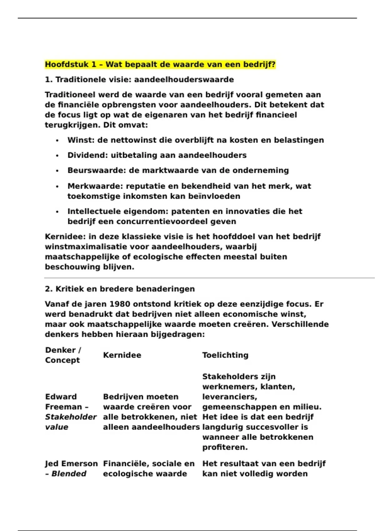 de financiële opbrengsten voor aandeelhouders. Dit betekent dat