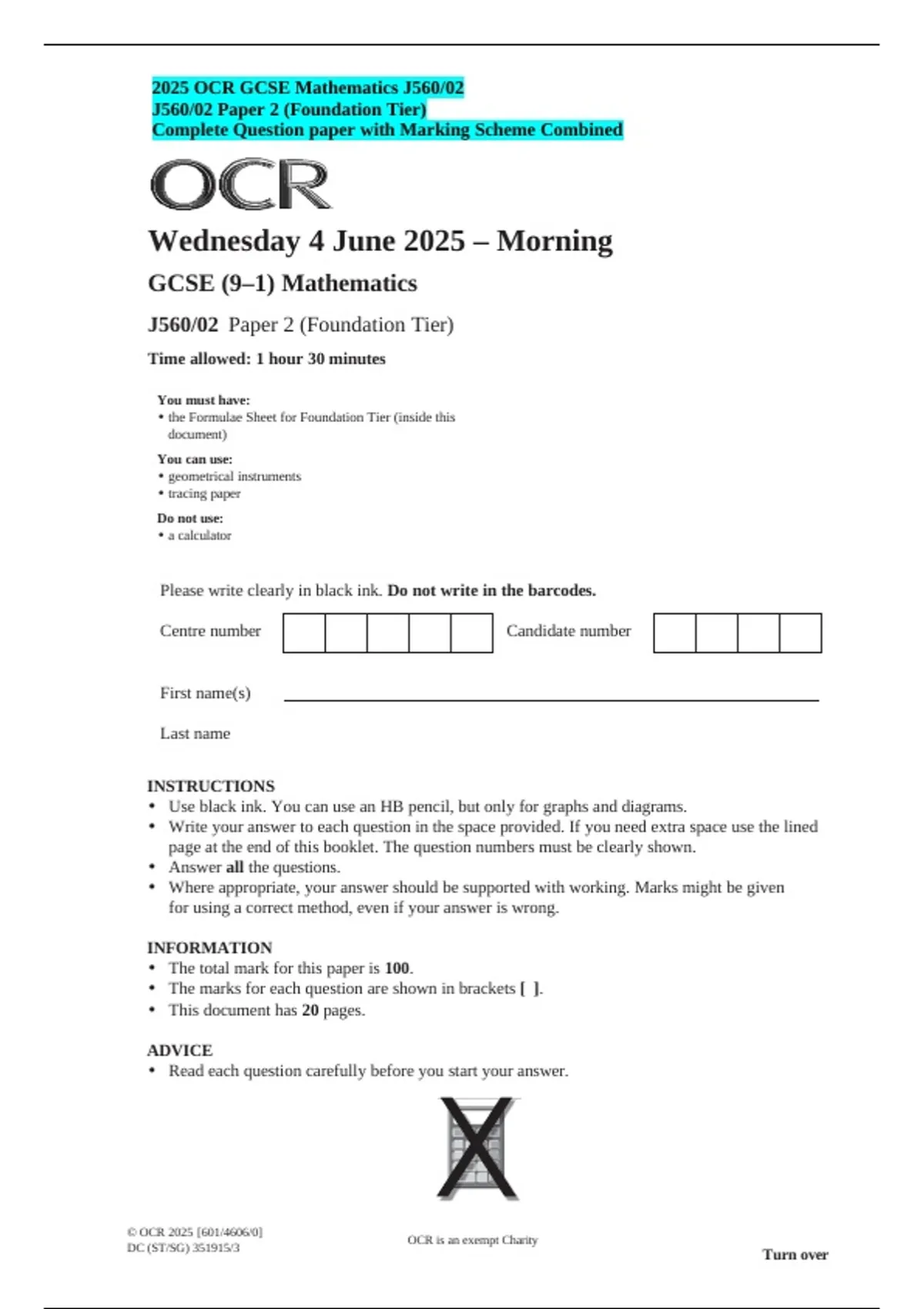 • Use black ink. You can use an HB pencil, but only for graphs and diagrams.