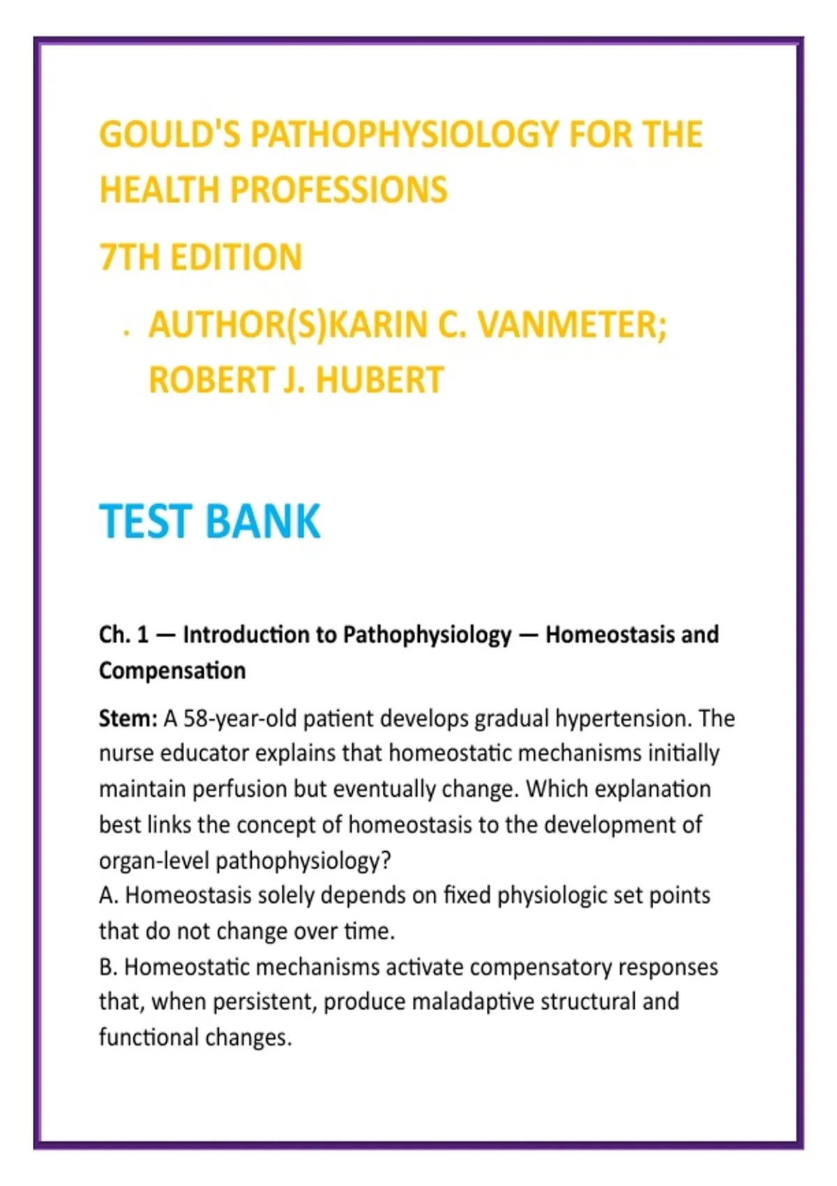 Rationale — Correct (B): Pathophysiology integrates altered