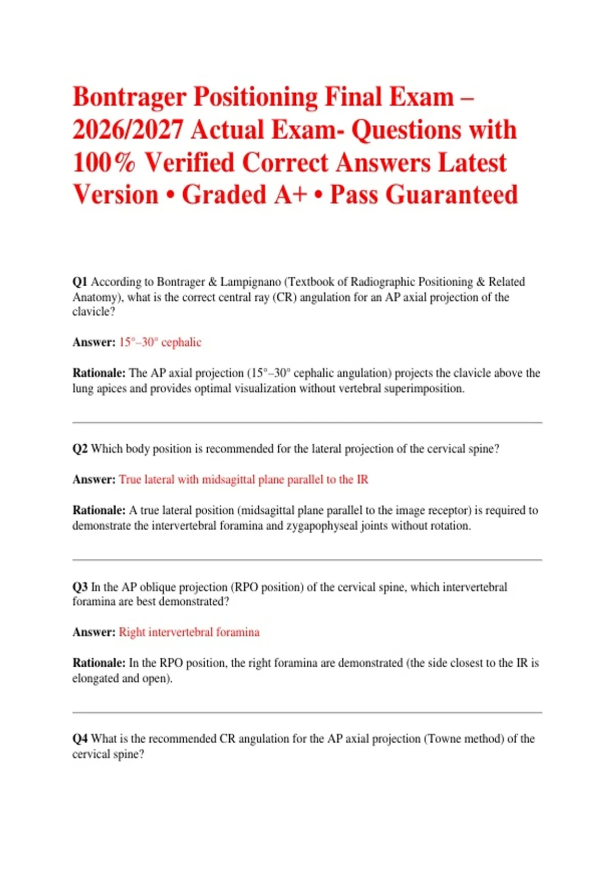 Q1 According to Bontrager & Lampignano (Textbook of Radiographic Positioning & Related