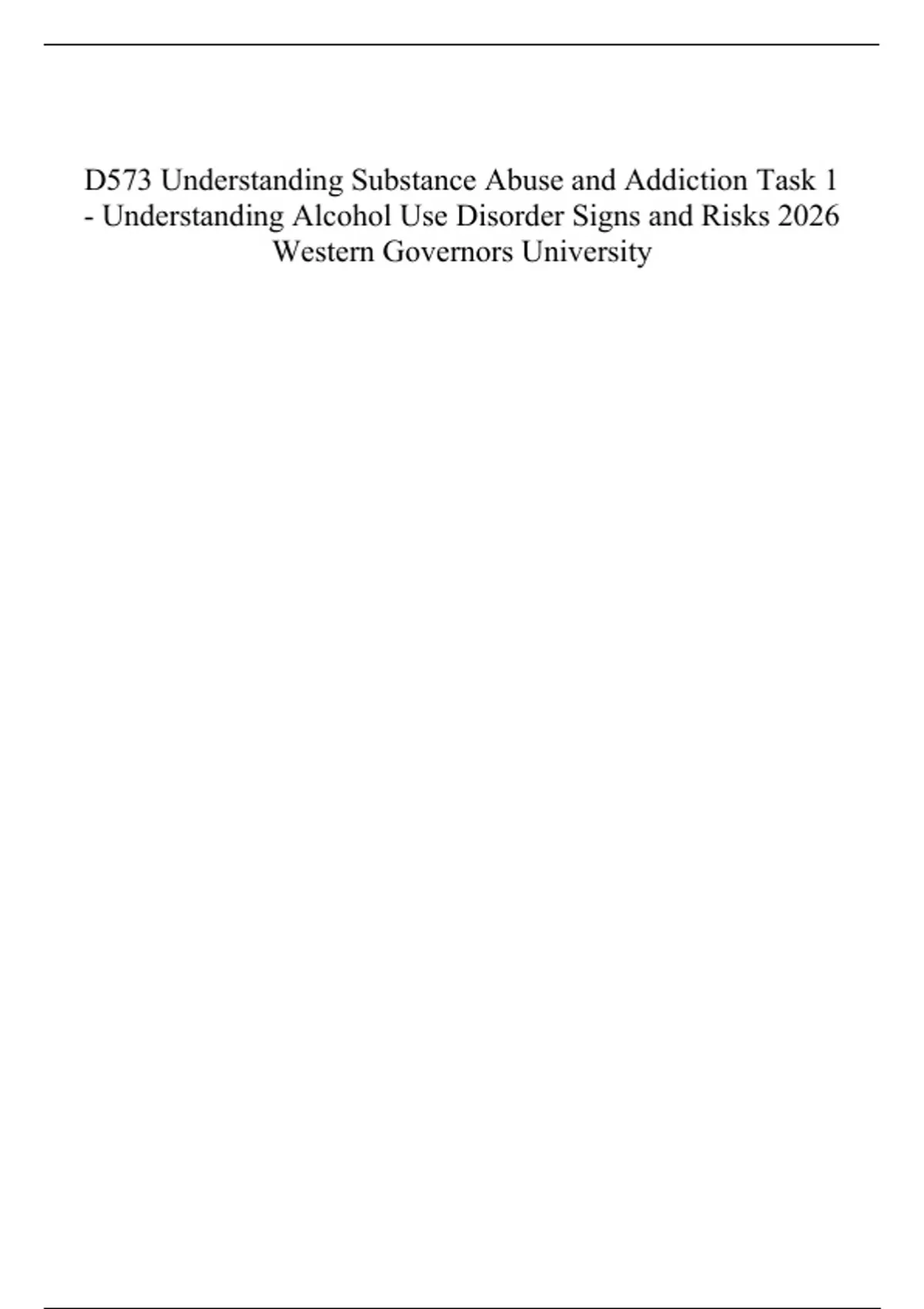 D573 Understanding Substance Abuse and Addiction Task 1 - Understanding Alcohol Use Disorder Signs and Risks 2026 Western Governors University