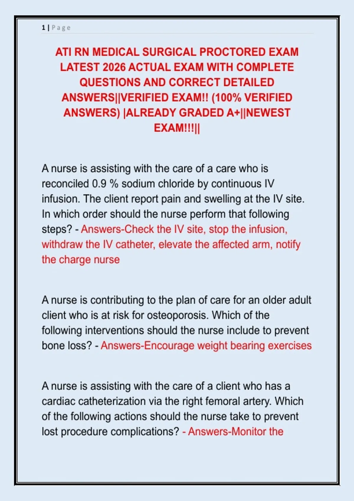 ATI RN MEDICAL SURGICAL PROCTORED EXAM