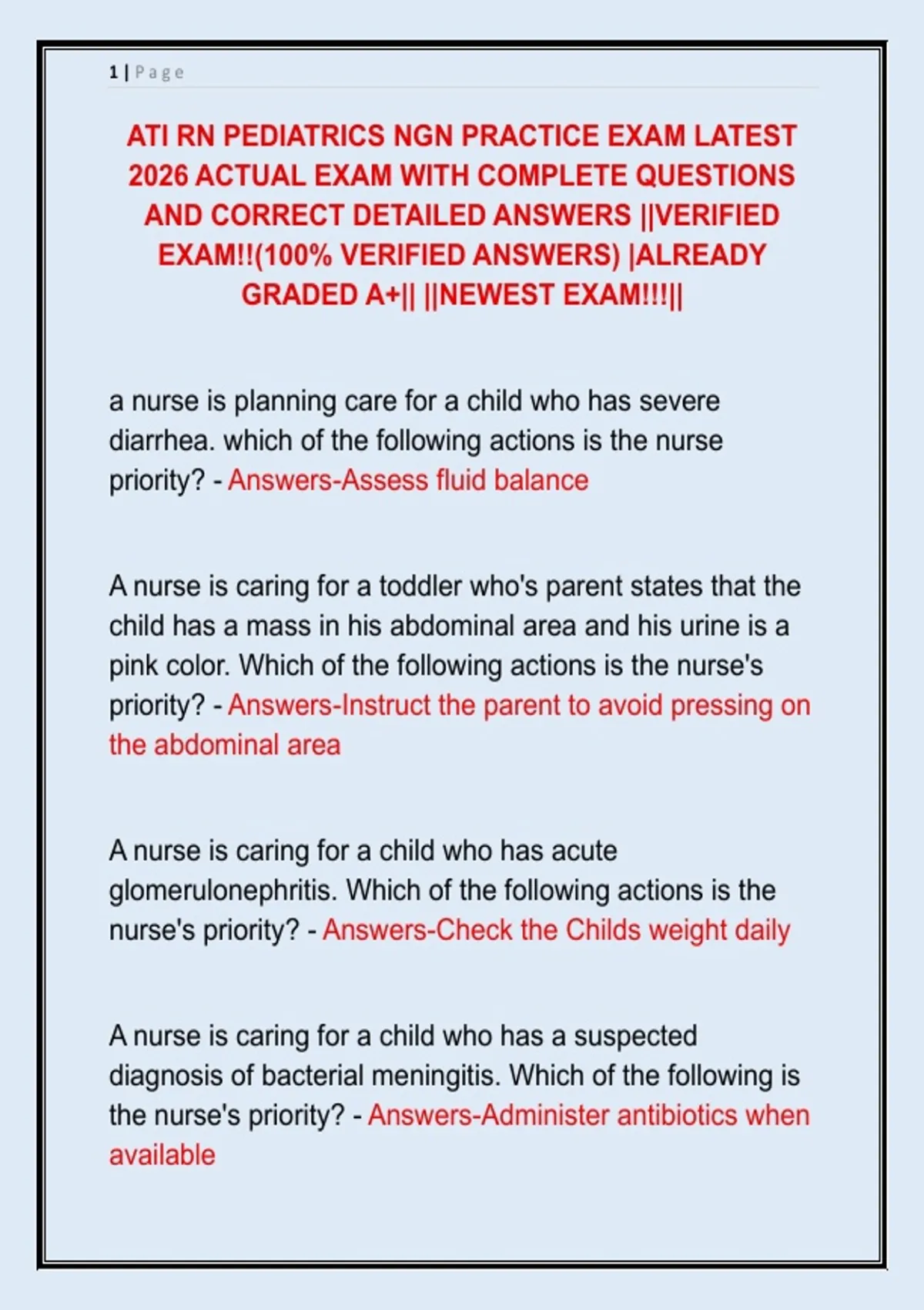 ATI RN PEDIATRICS NGN PRACTICE EXAM LATEST