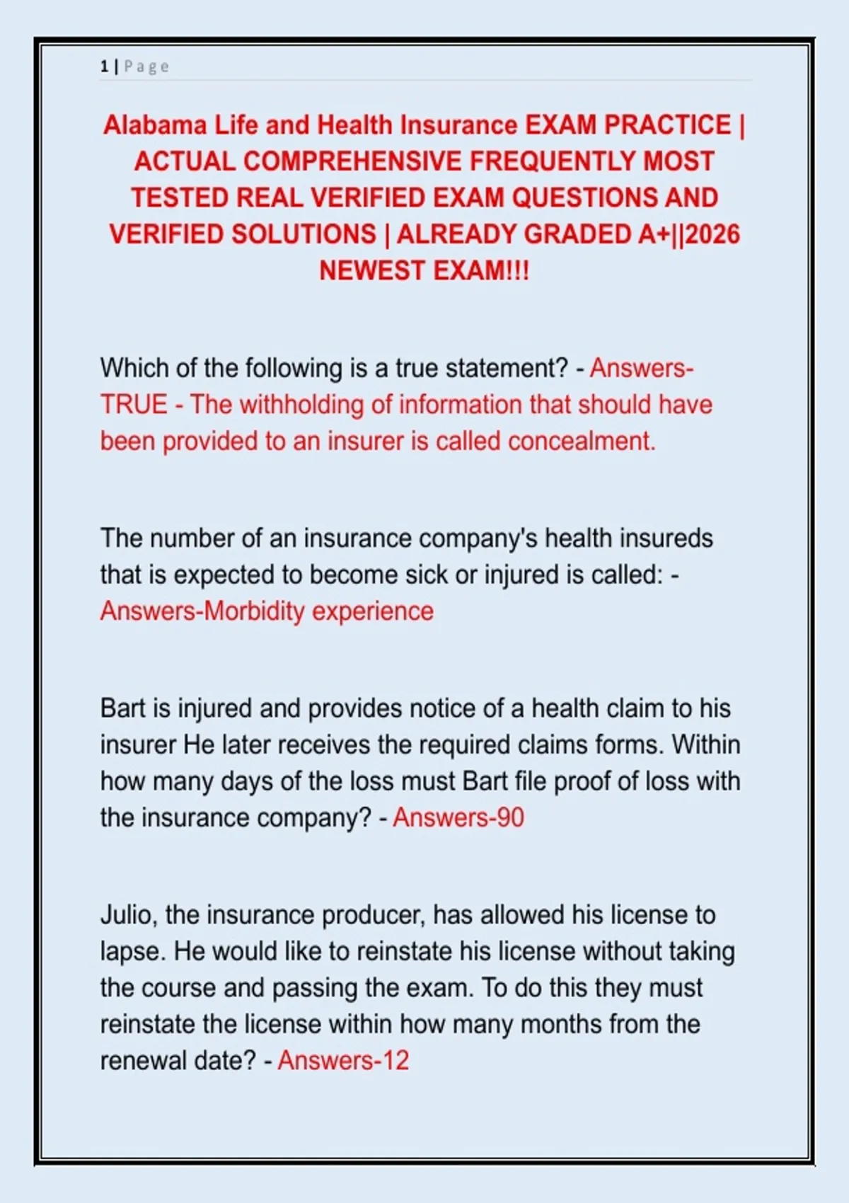Alabama Life and Health Insurance EXAM PRACTICE |