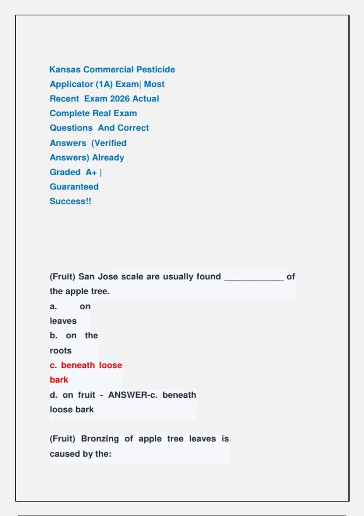d. on fruit - ANSWER-c. beneath