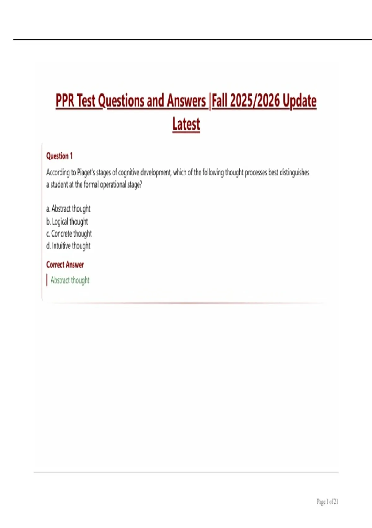 PPR Test Questions and Answers |Fall 2025/2026 Update