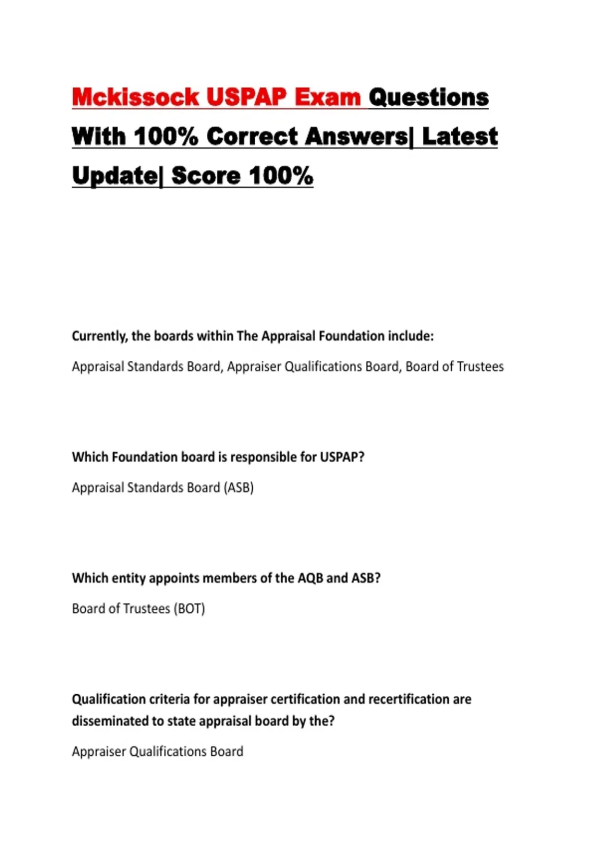 Appraisal Standards Board, Appraiser Qualifications Board, Board of Trustees