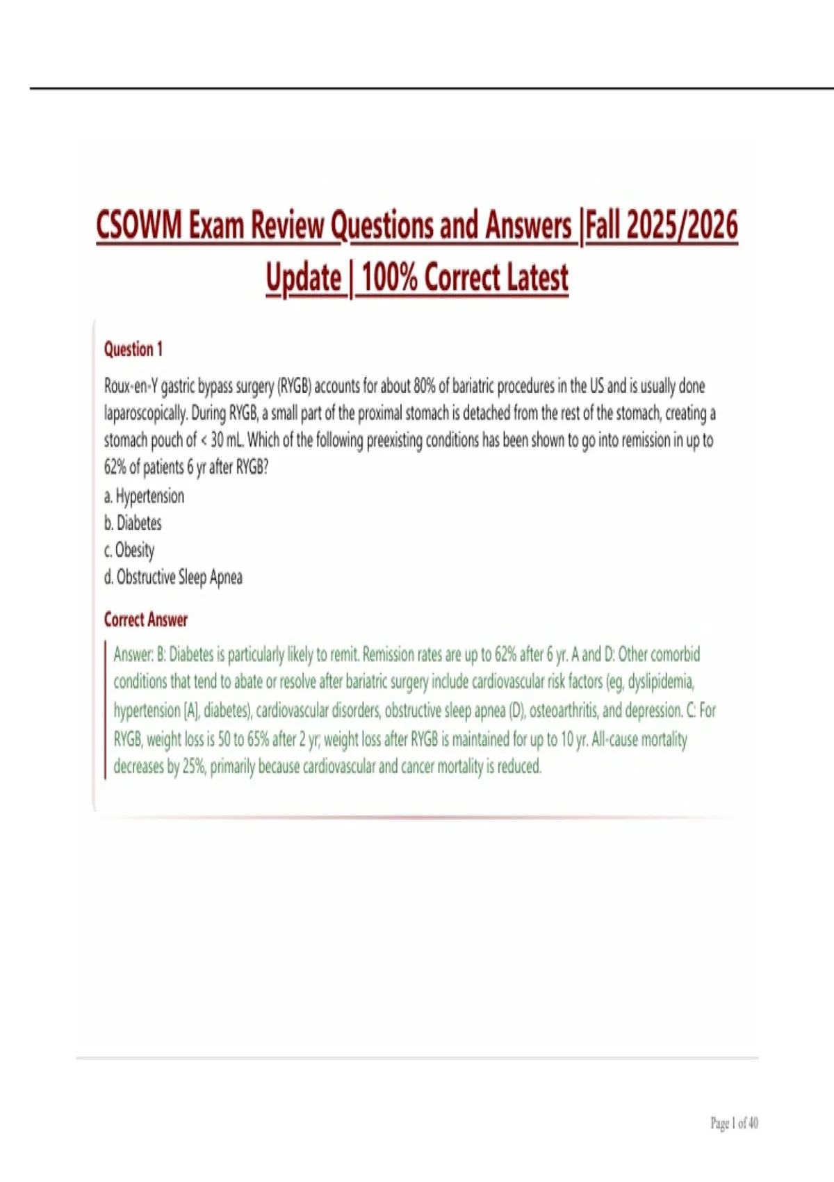 Answer: B: Diabetes is particularly likely to remit. Remission rates are up to 62% after 6 yr. A and D: Other comorbid