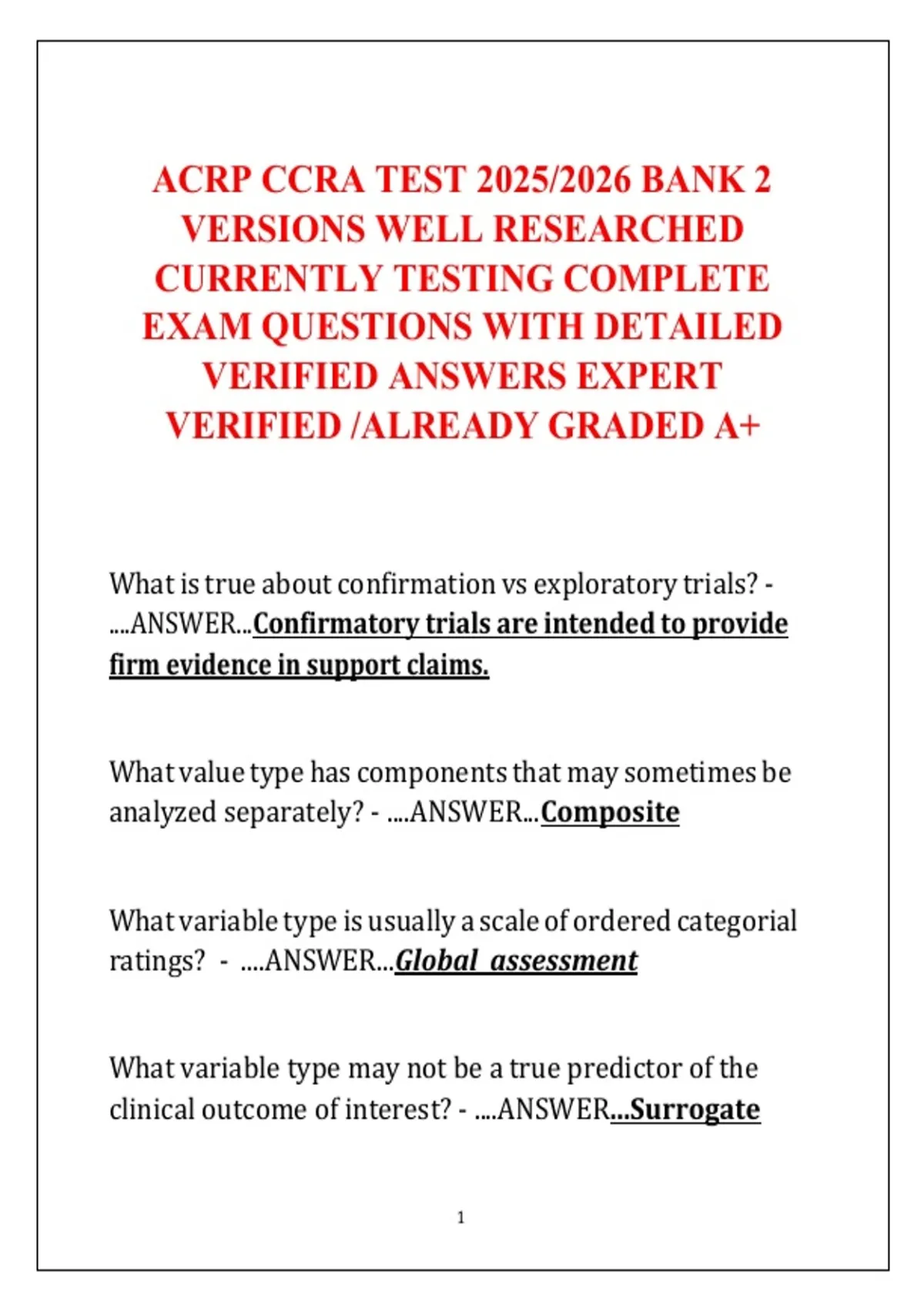 ACRP CCRA TEST 2025/2026 BANK 2 VERSIONS WELL RESEARCHED CURRENTLY TESTING COMPLETE EXAM QUESTIONS WITH DETAILED VERIFIED ANSWERS EXPERT VERIFIED /ALREADY GRADED A+