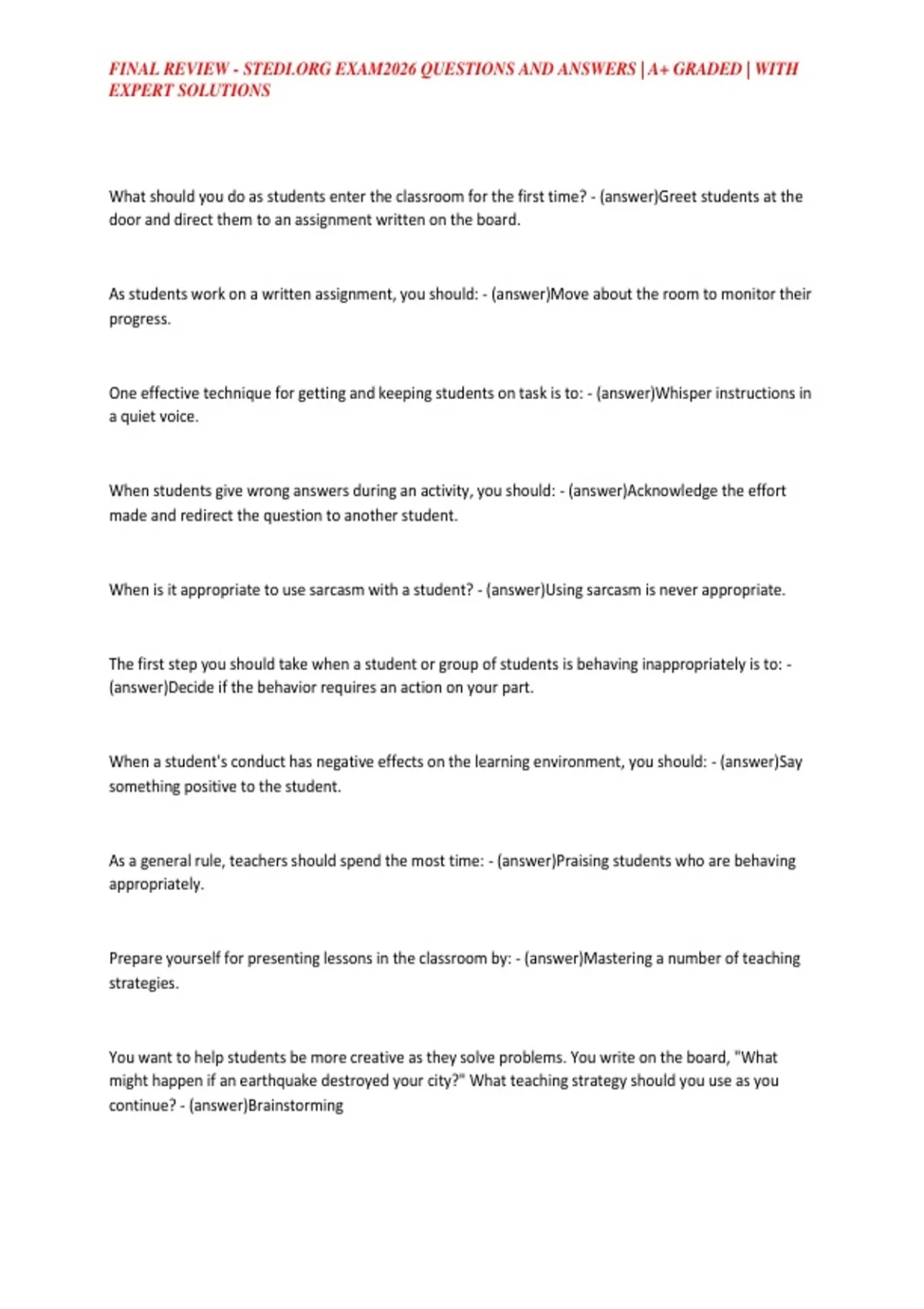 FINAL REVIEW - STEDI.ORG EXAM2026 QUESTIONS AND ANSWERS | A+ GRADED | WITH EXPERT SOLUTIONS