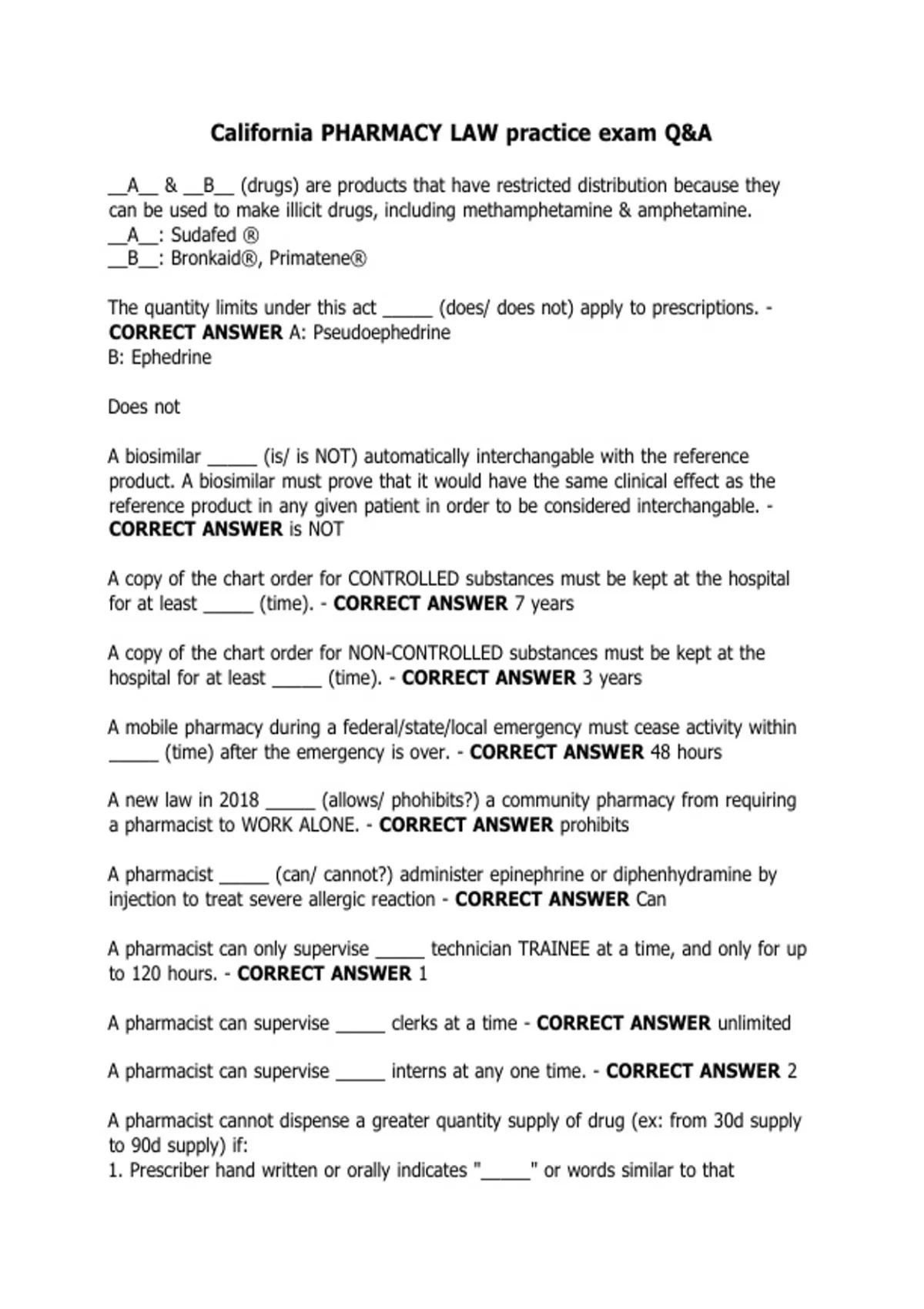 California Pharmacy Law Practice Exam Q&A – California Board of Pharmacy – Exam Preparation Practice Questions with Answers