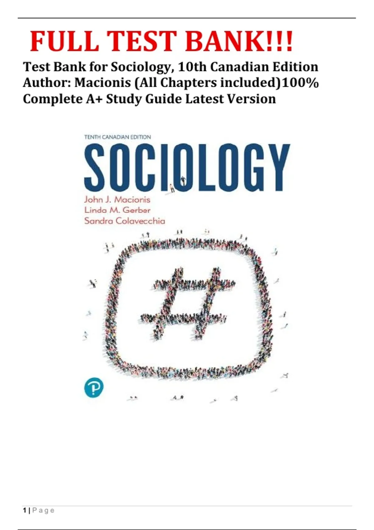 ,Test Bank for Macionis/Gerber, Sociology, Tenth Canadian Edition Chapter 1: The
