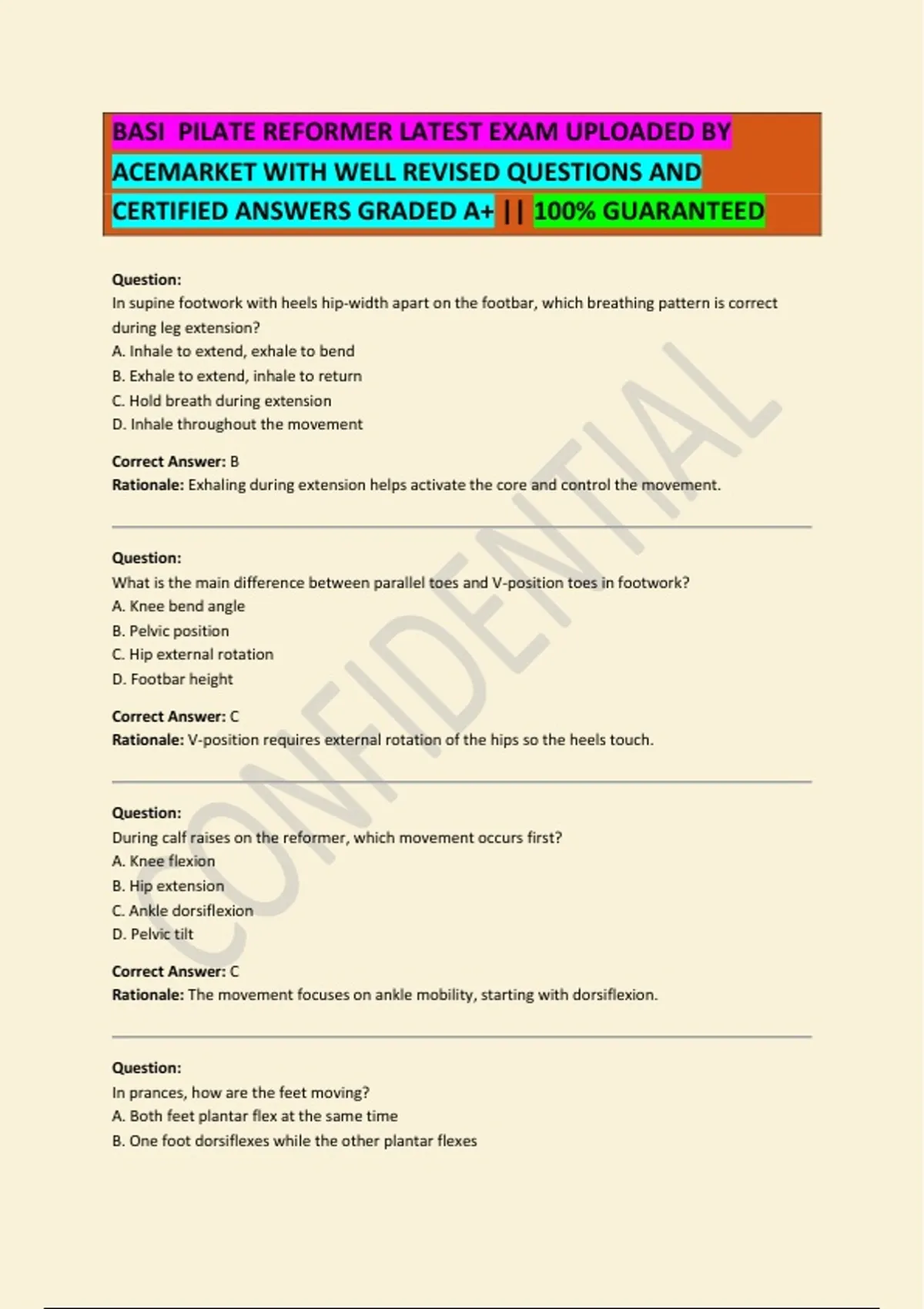 BASI PILATE REFORMER LATEST EXAM UPLOADED BY