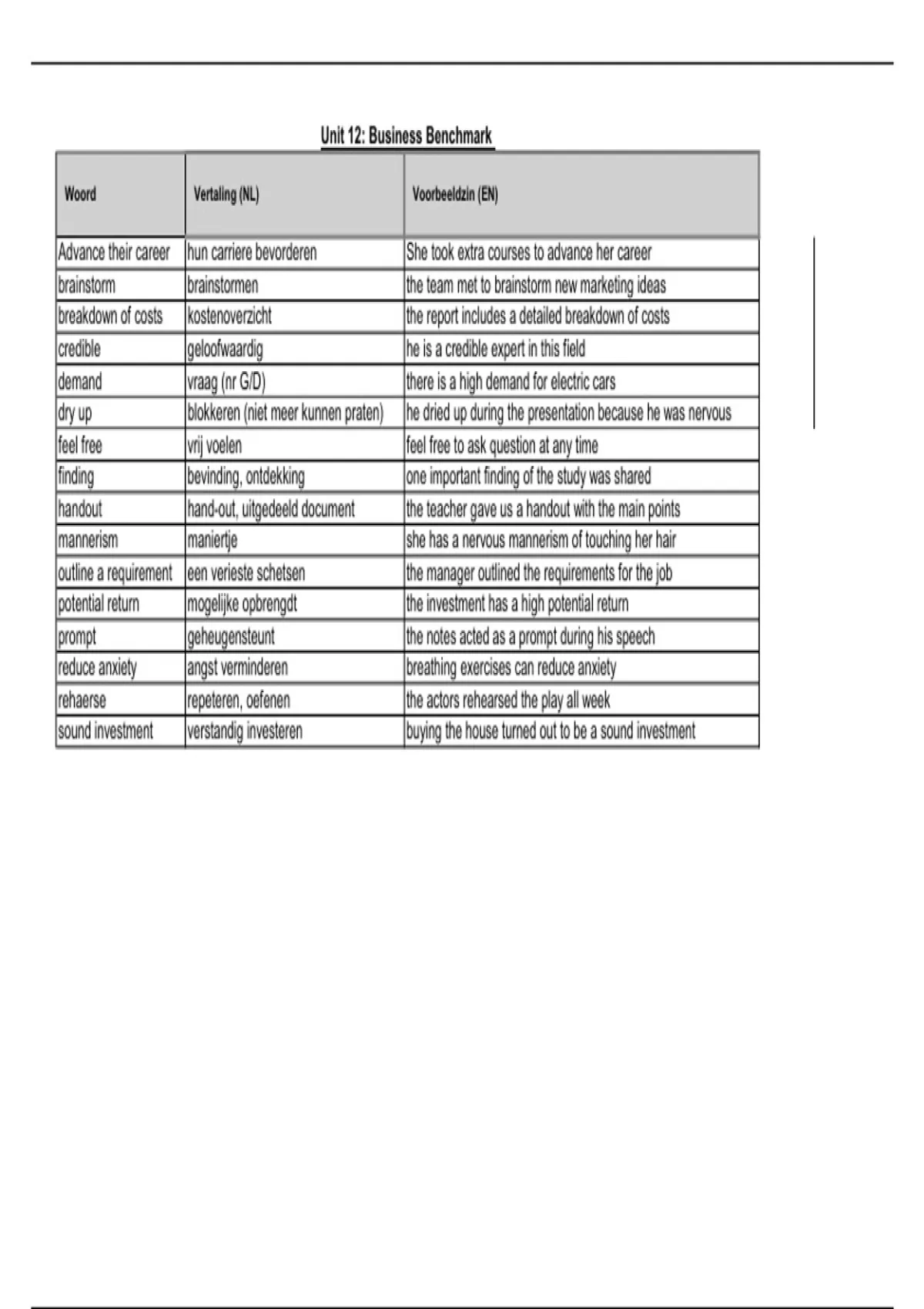 Woord Vertaling (NL) Voorbeeldzin (EN)