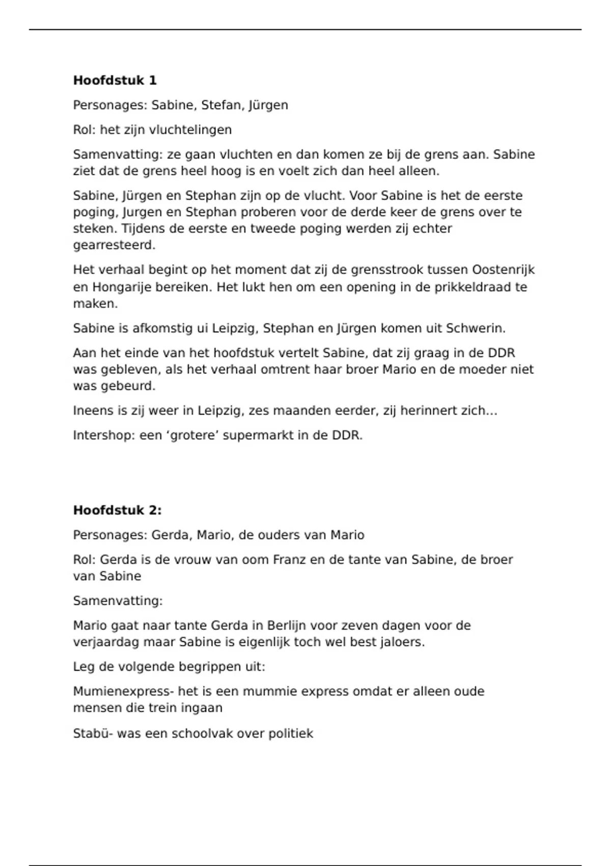 Samenvatting: ze gaan vluchten en dan komen ze bij de grens aan. Sabine