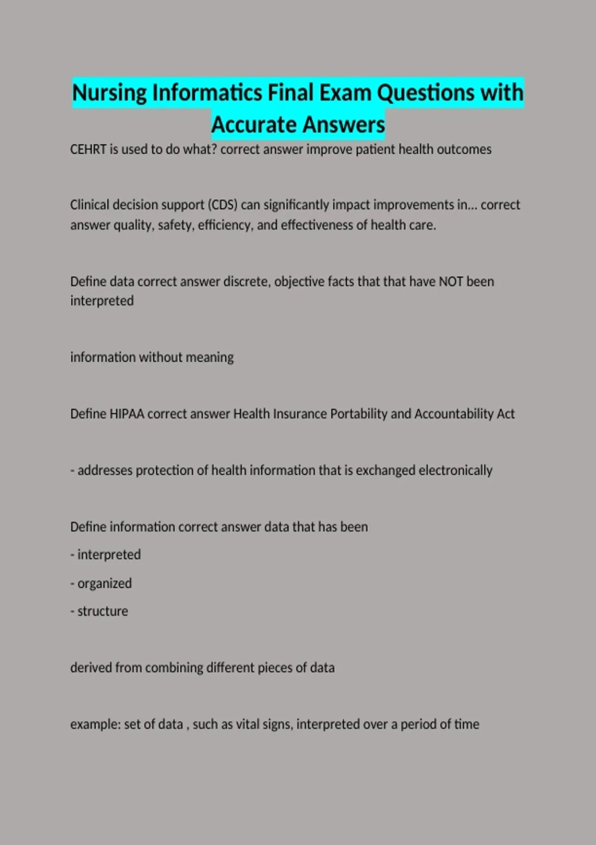 Define Nursing Informatics (intro to NI handout) correct answer NI is the science