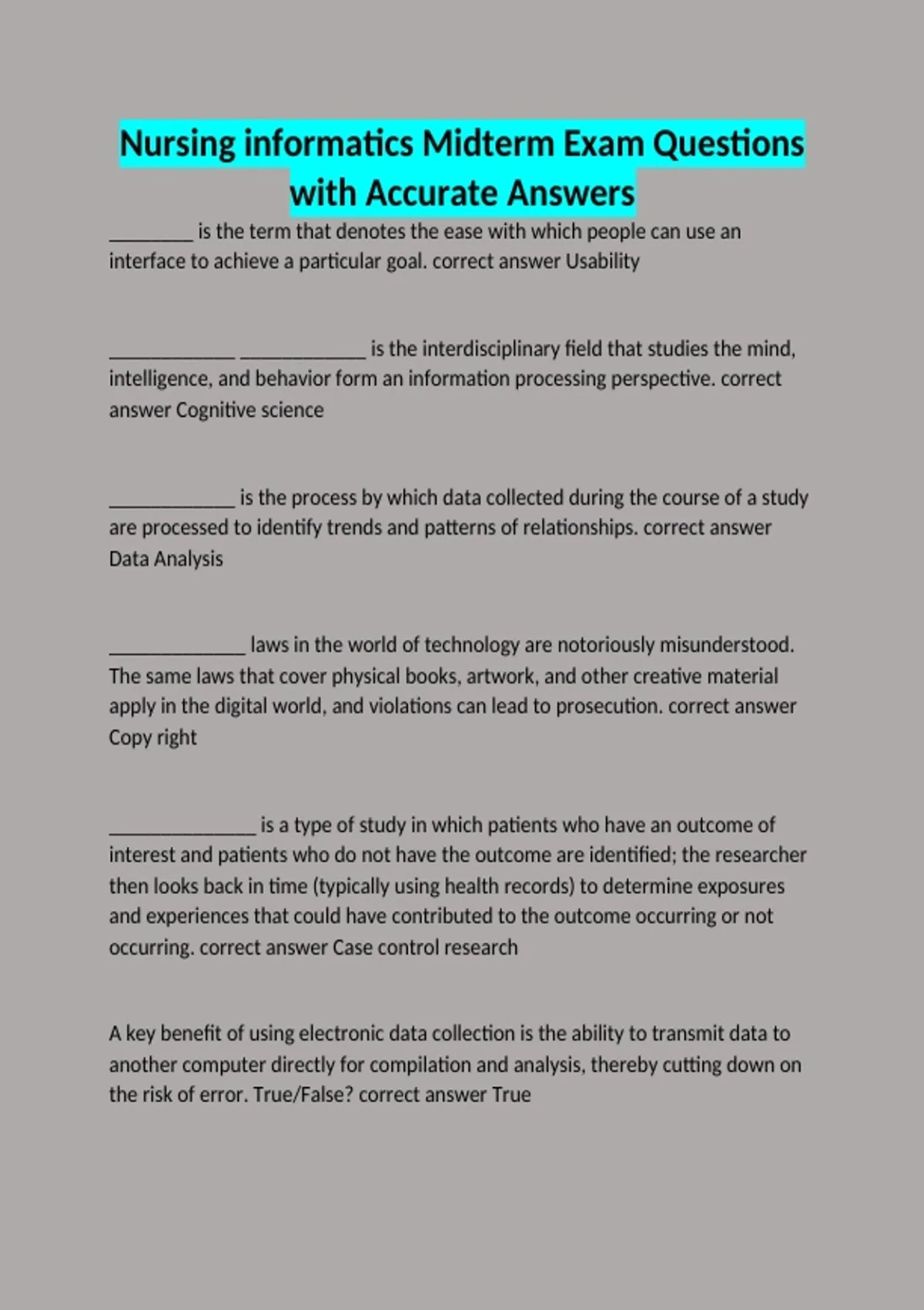 technology in health care. Which statement by the nurse is correct? correct