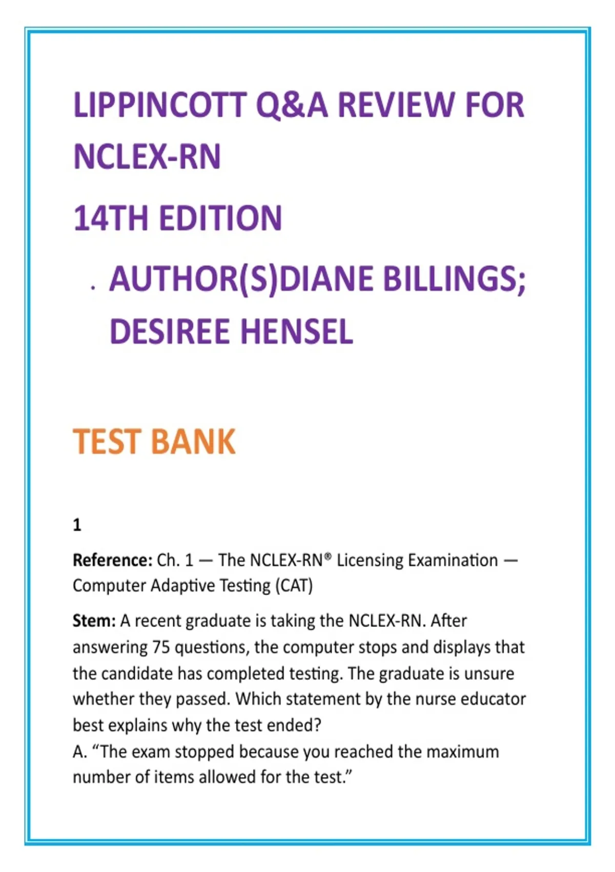 ,Citation: Billings, D. M., & Hensel, D. (2024). Lippincott Q&A