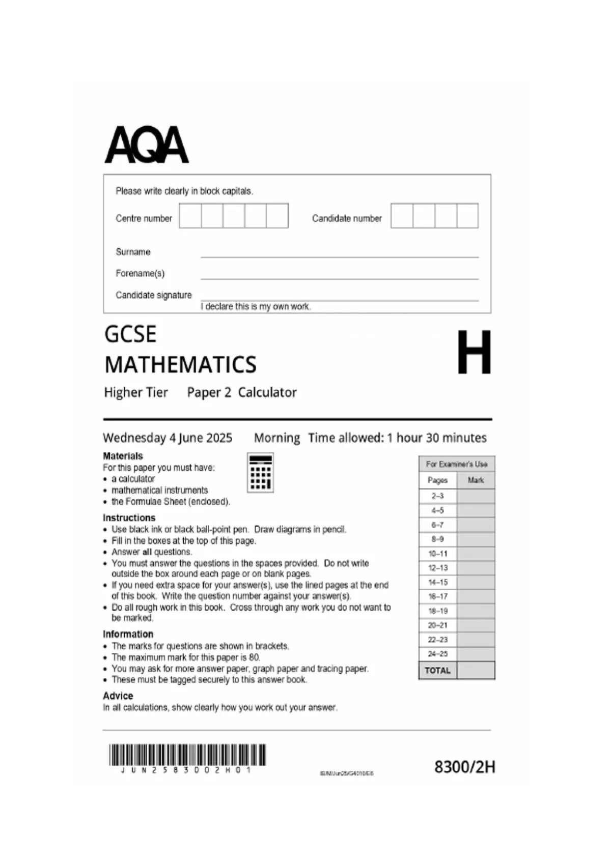 full guide for gcse aqa mathematics higher tier paper 2 2025 exam merged mark scheme