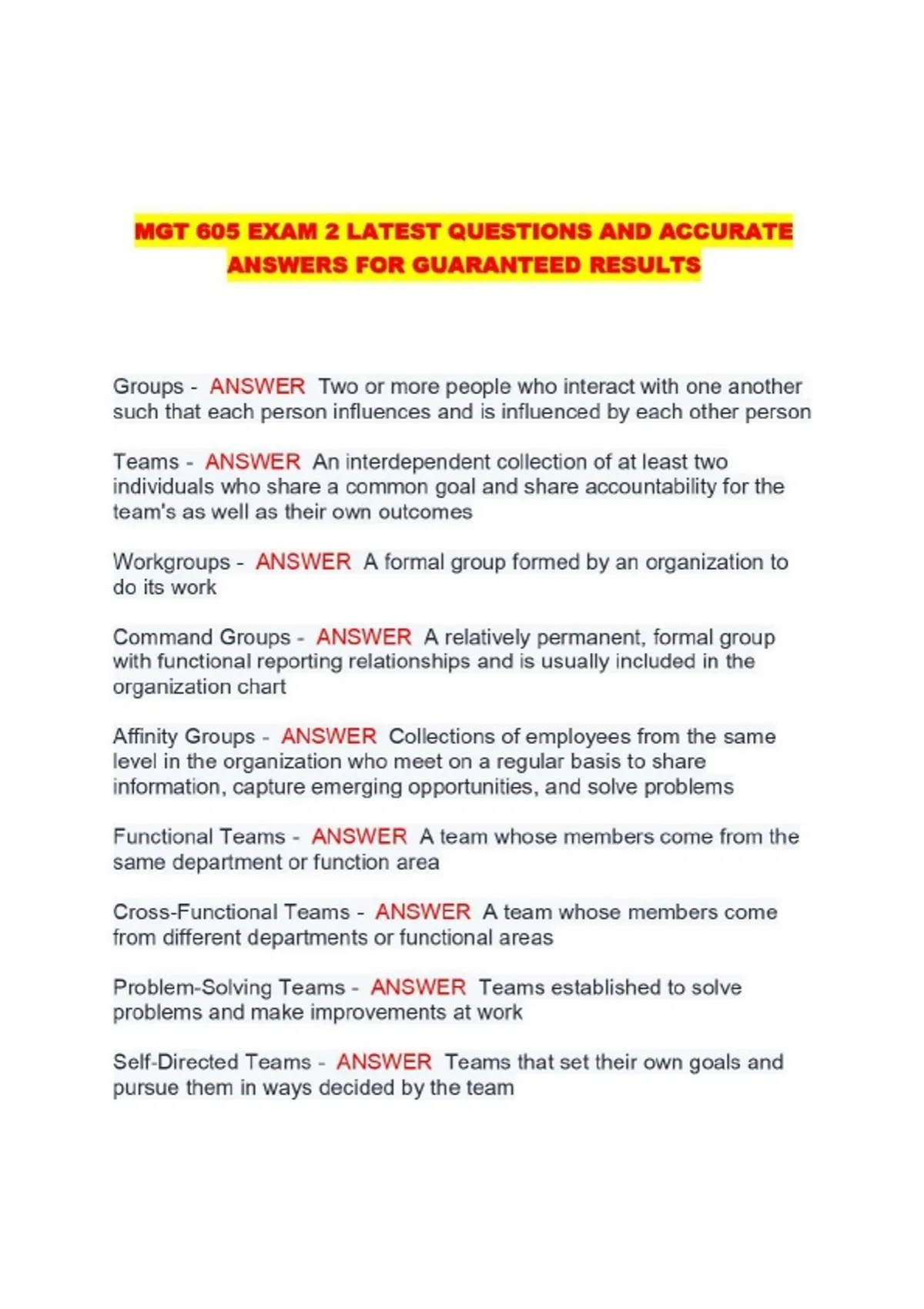 MGT 605 /MGT605 PACKAGED EXAMS: NEW EXAM QUESTIONS AND CORRECT ANSWERS FOR TOP PERFORMANCE