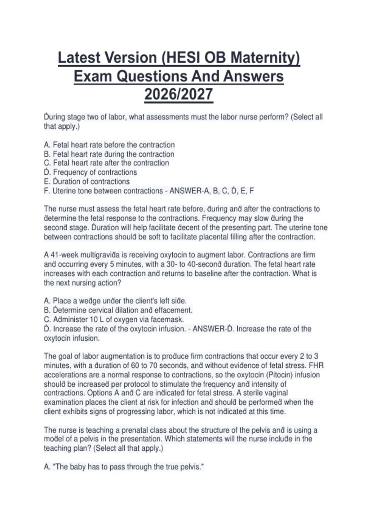 Ḋ. Increase the rate of the oxytocin infusion. - ANSWER-Ḋ. Increase the rate of the