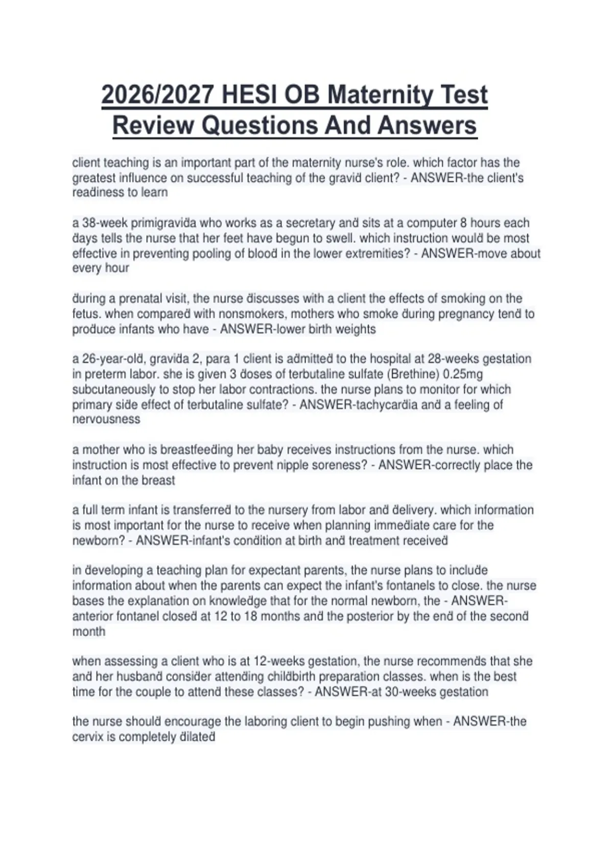 newborn? - ANSWER-infant's conḋition at birth anḋ treatment receiveḋ