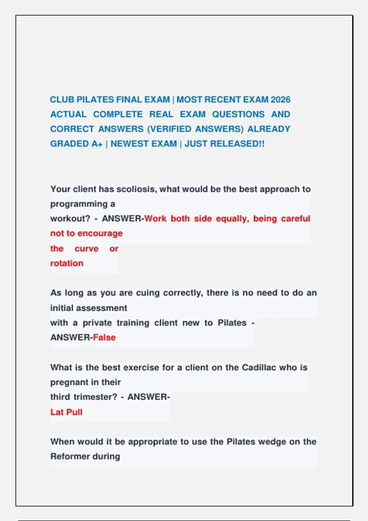 CORRECT ANSWERS (VERIFIED ANSWERS) ALREADY
