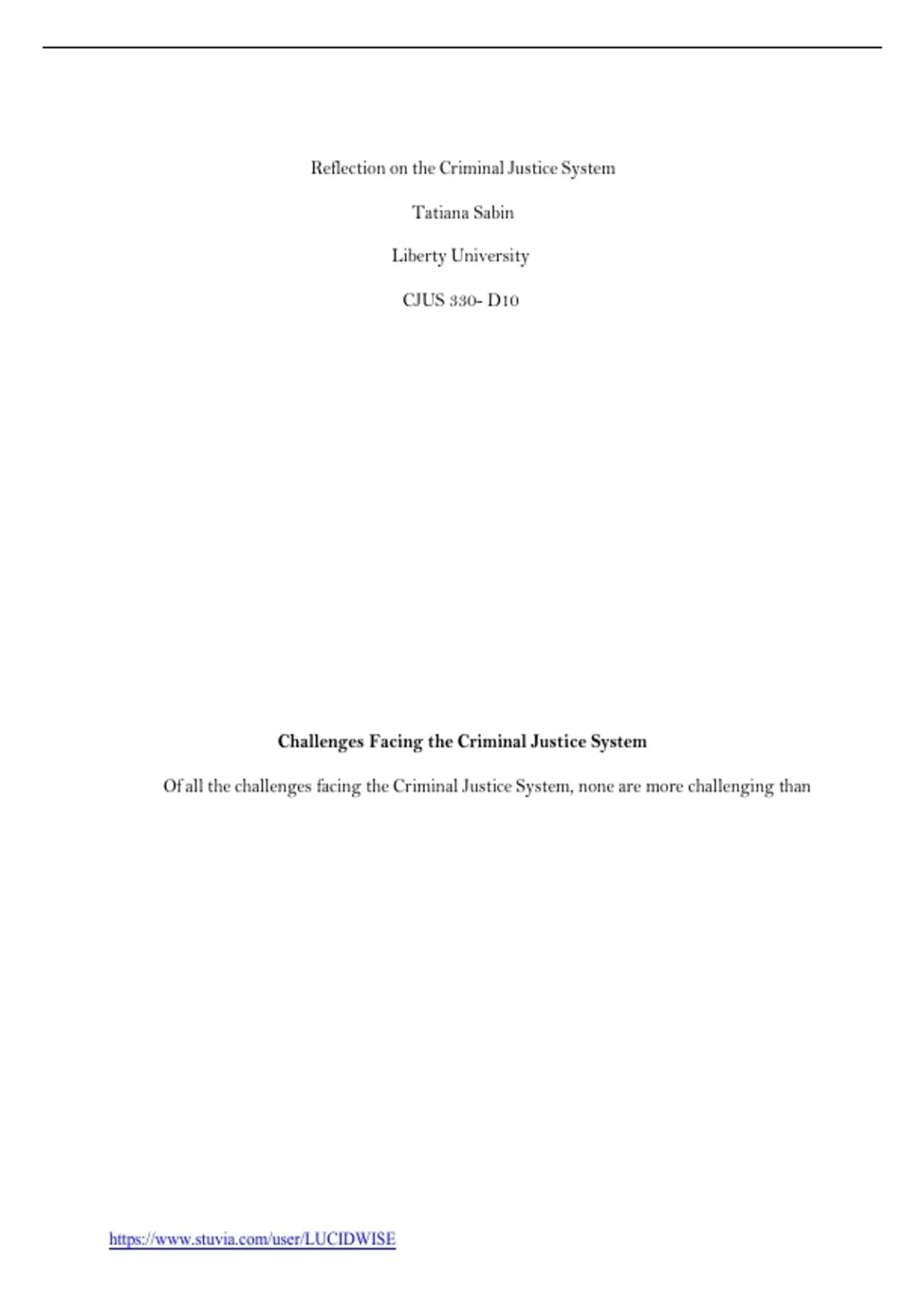 Reflection on the Criminal Justice System