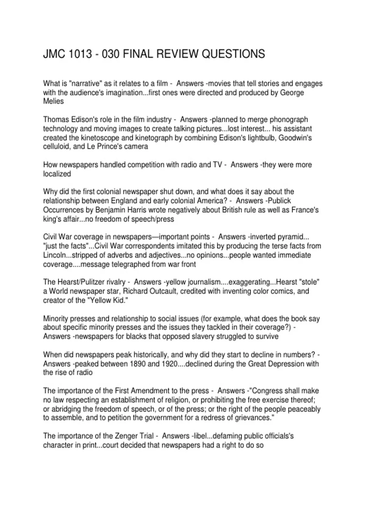 JMC 1013 - 030 FINAL REVIEW QUESTIONS
