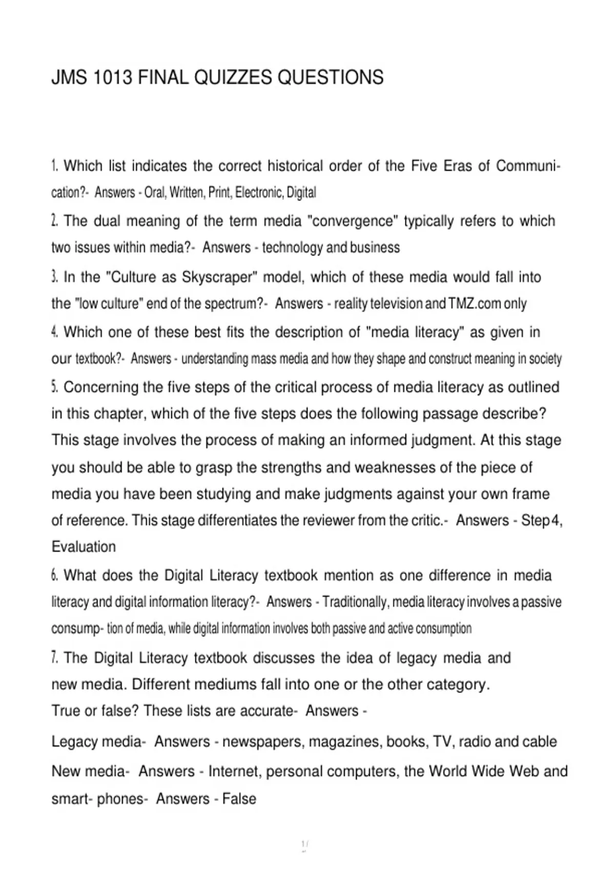 JMS 1013 FINAL QUIZZES QUESTIONS