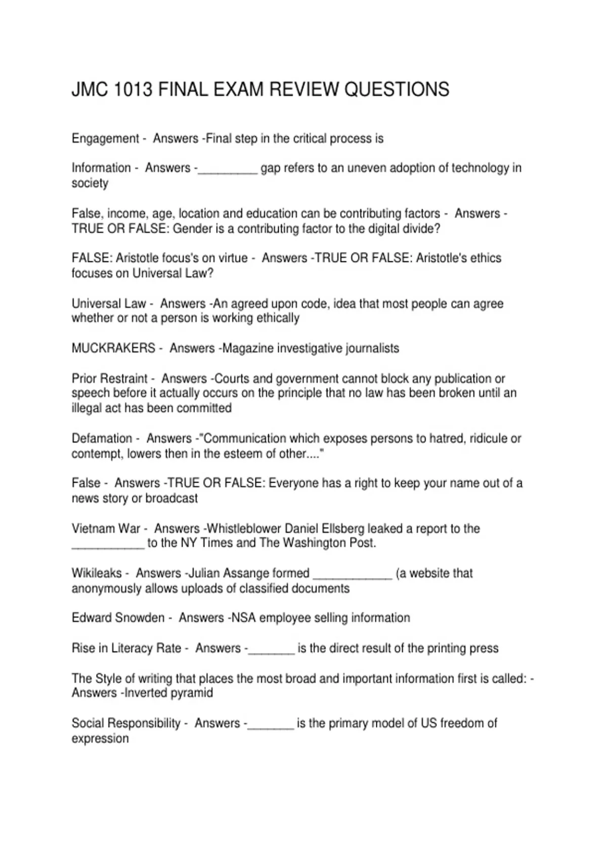 JMC 1013 FINAL EXAM REVIEW QUESTIONS