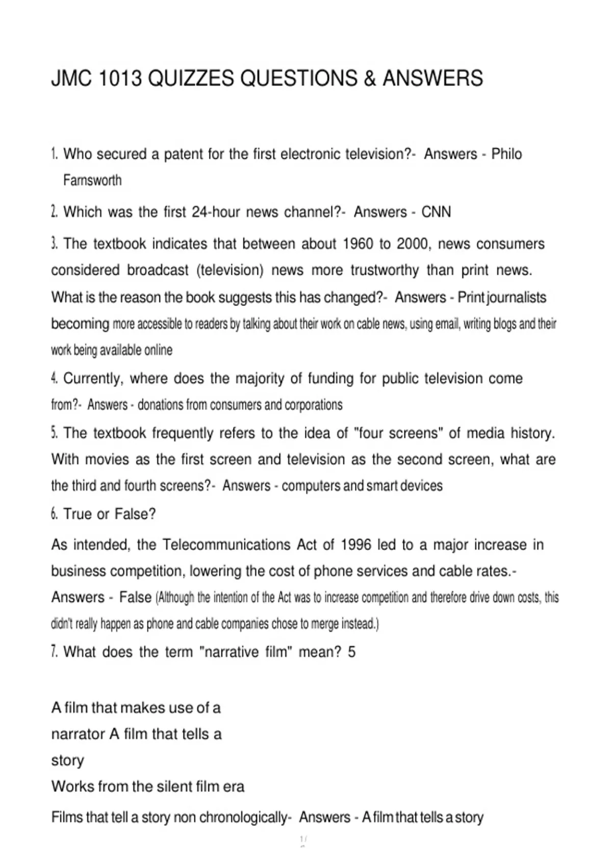 JMC 1013 QUIZZES QUESTIONS & ANSWERS